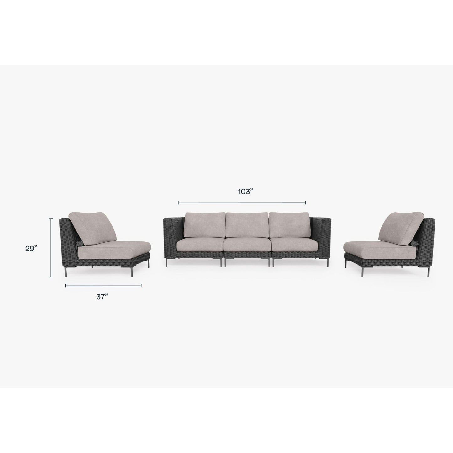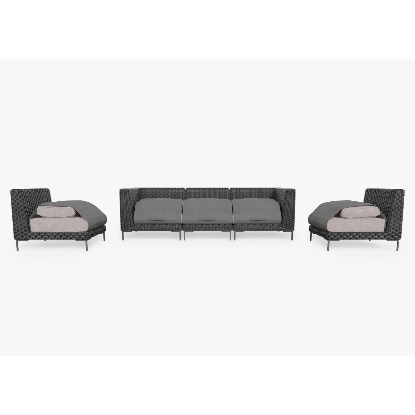 SKU:Black Wicker Outdoor Sofa with Armless Chairs - 5 Seat - Sandstone Gray