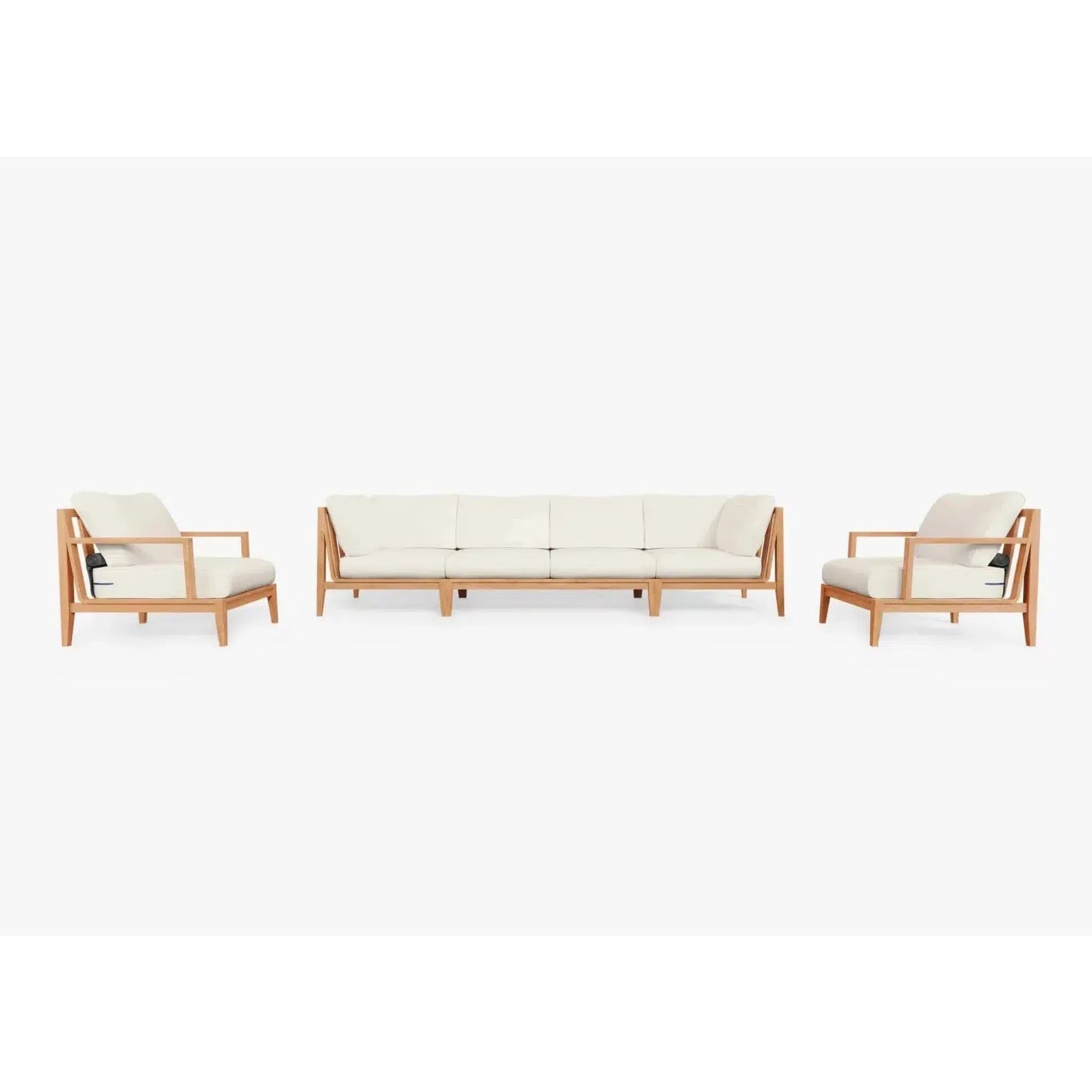 Live Outer 127" Teak Outdoor Sofa With Armchairs and Palisades Cream Cushion (6-Seat)