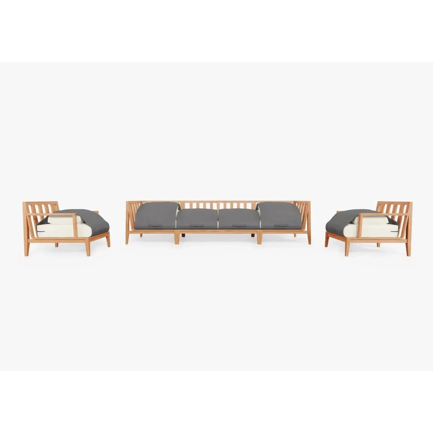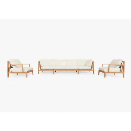SKU:Teak Outdoor Sofa with Armchairs - 6 Seat - Palisades Cream