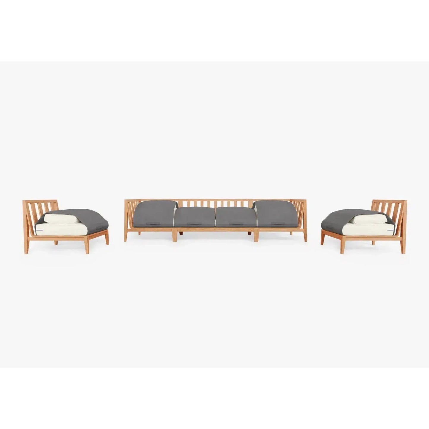 SKU:Teak Outdoor Sofa with Armless Chairs - 6 Seat - Palisades Cream