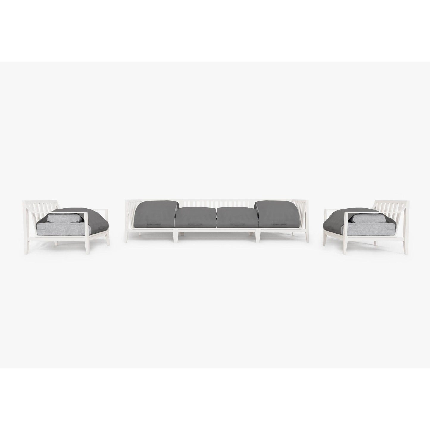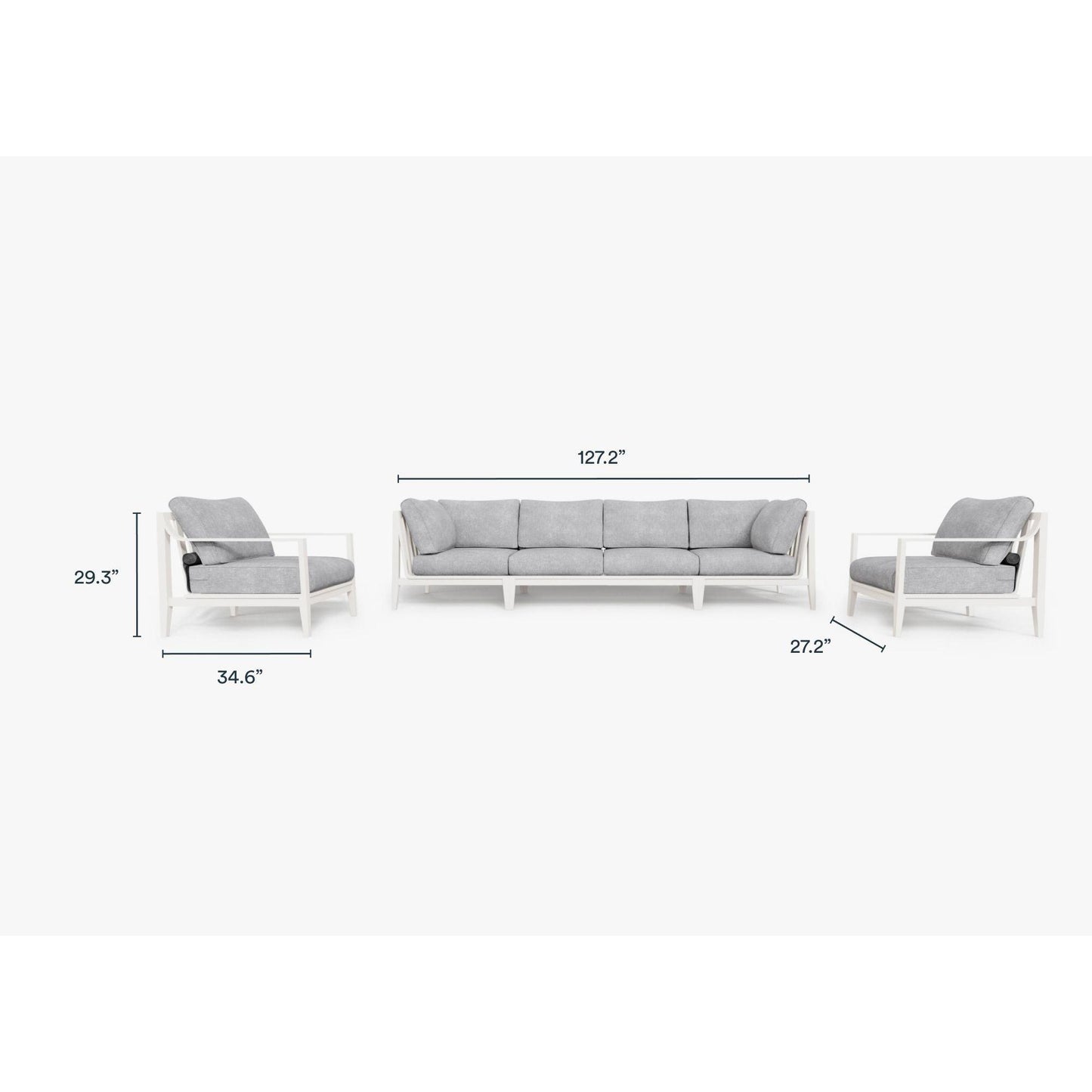 Live Outer 127" White Aluminum Outdoor Sofa With Armchairs and Pacific Fog Gray Cushion (6-Seat)