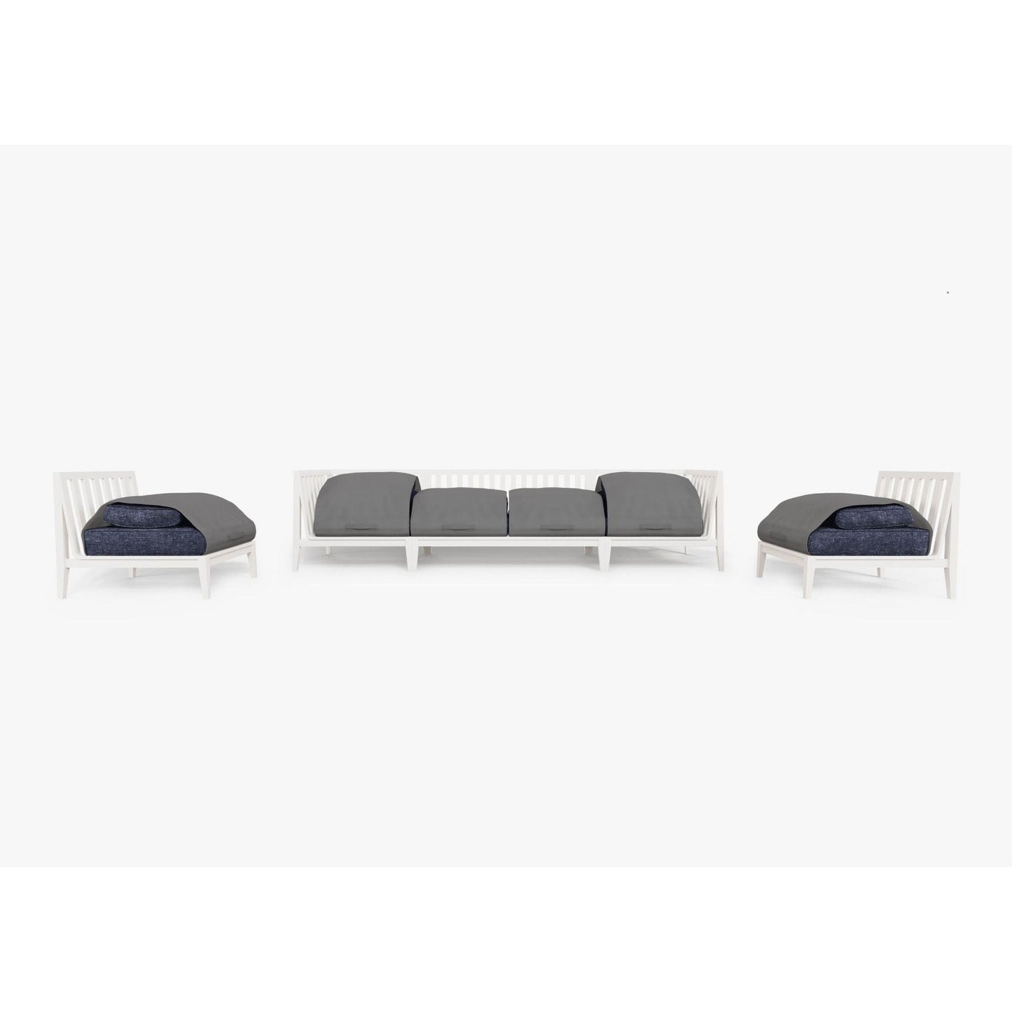 SKU:White Aluminum Outdoor Sofa with Armless Chairs - 6 Seat - Deep Sea Navy
