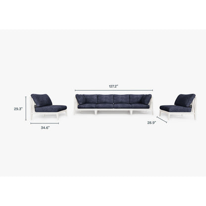 Live Outer 127" White Aluminum Outdoor Sofa With Armless Chairs and Deep Sea Navy Cushion (6-Seat)