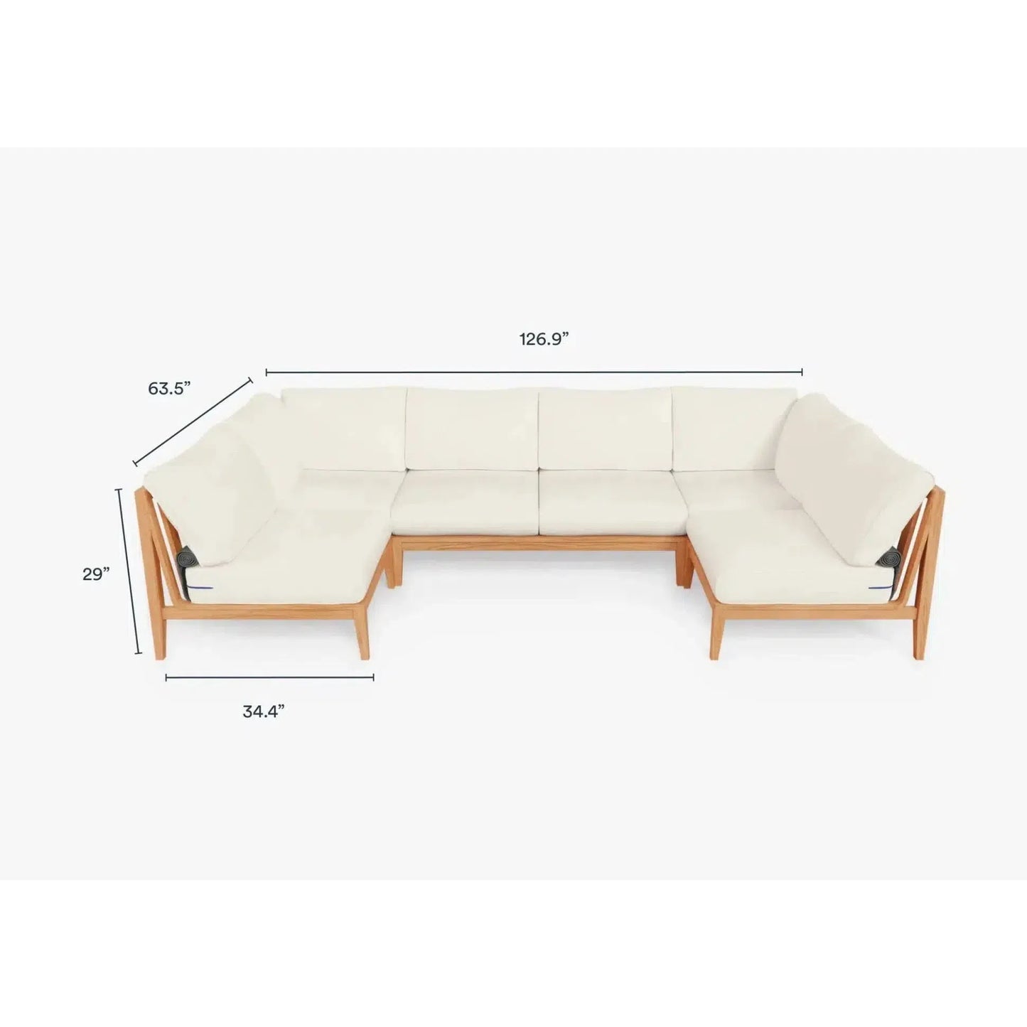Live Outer 127" x 64" Teak Outdoor U Shape Sectional 6-Seat With Palisades Cream Cushion