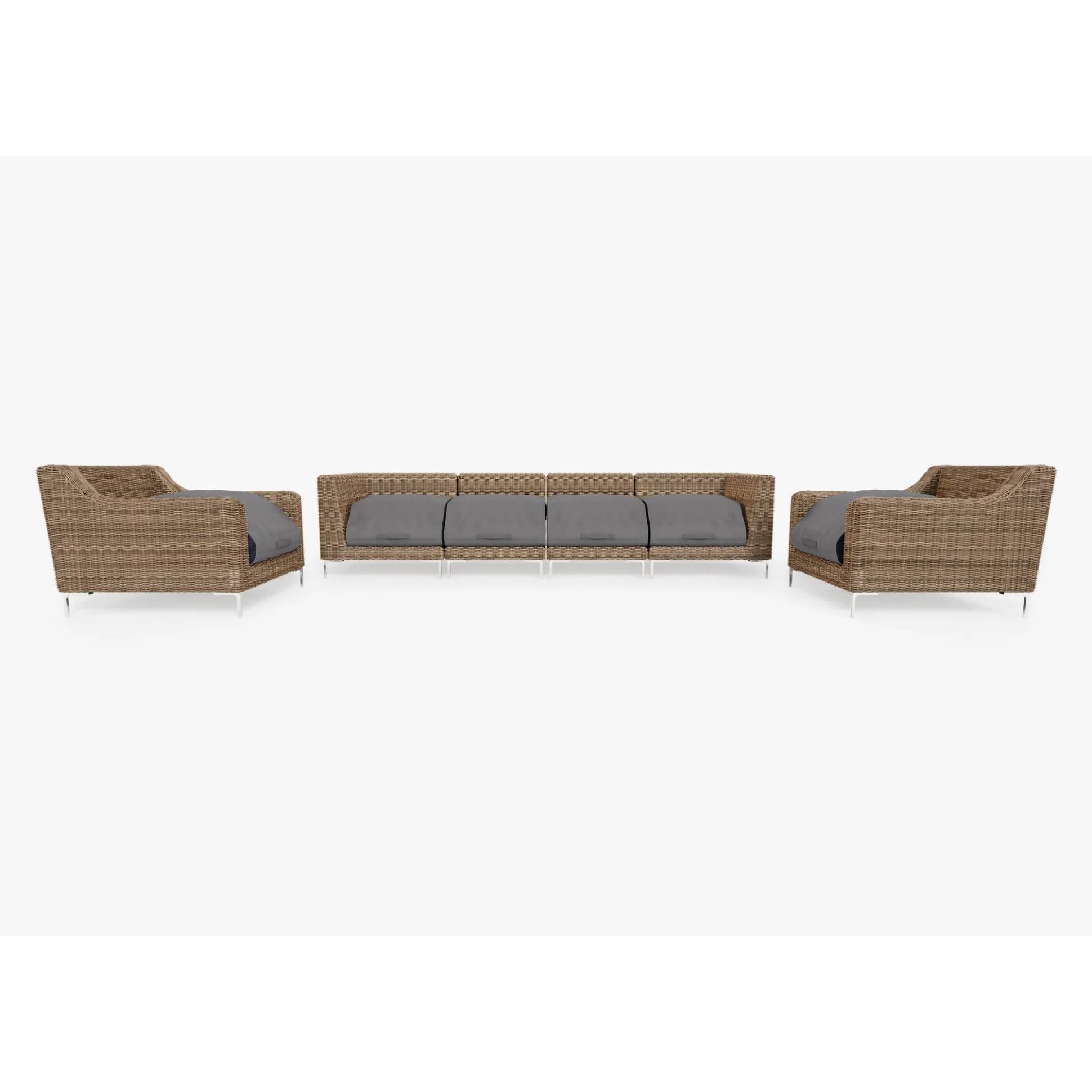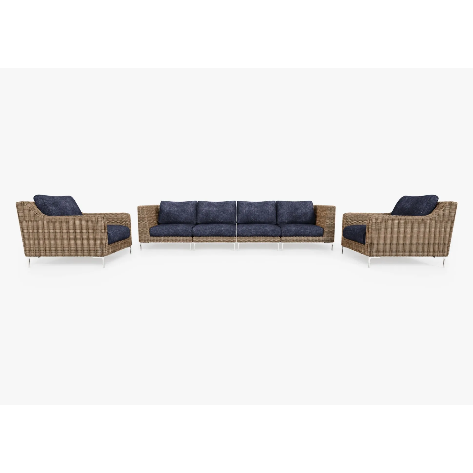 SKU:Brown Wicker Outdoor Sofa with Armchairs - 6 Seat - Deep Sea Navy