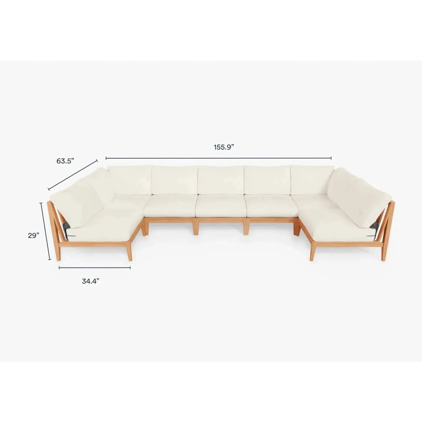 Live Outer 156" x 64" Teak Outdoor U Shape Sectional 7-Seat With Palisades Cream Cushion