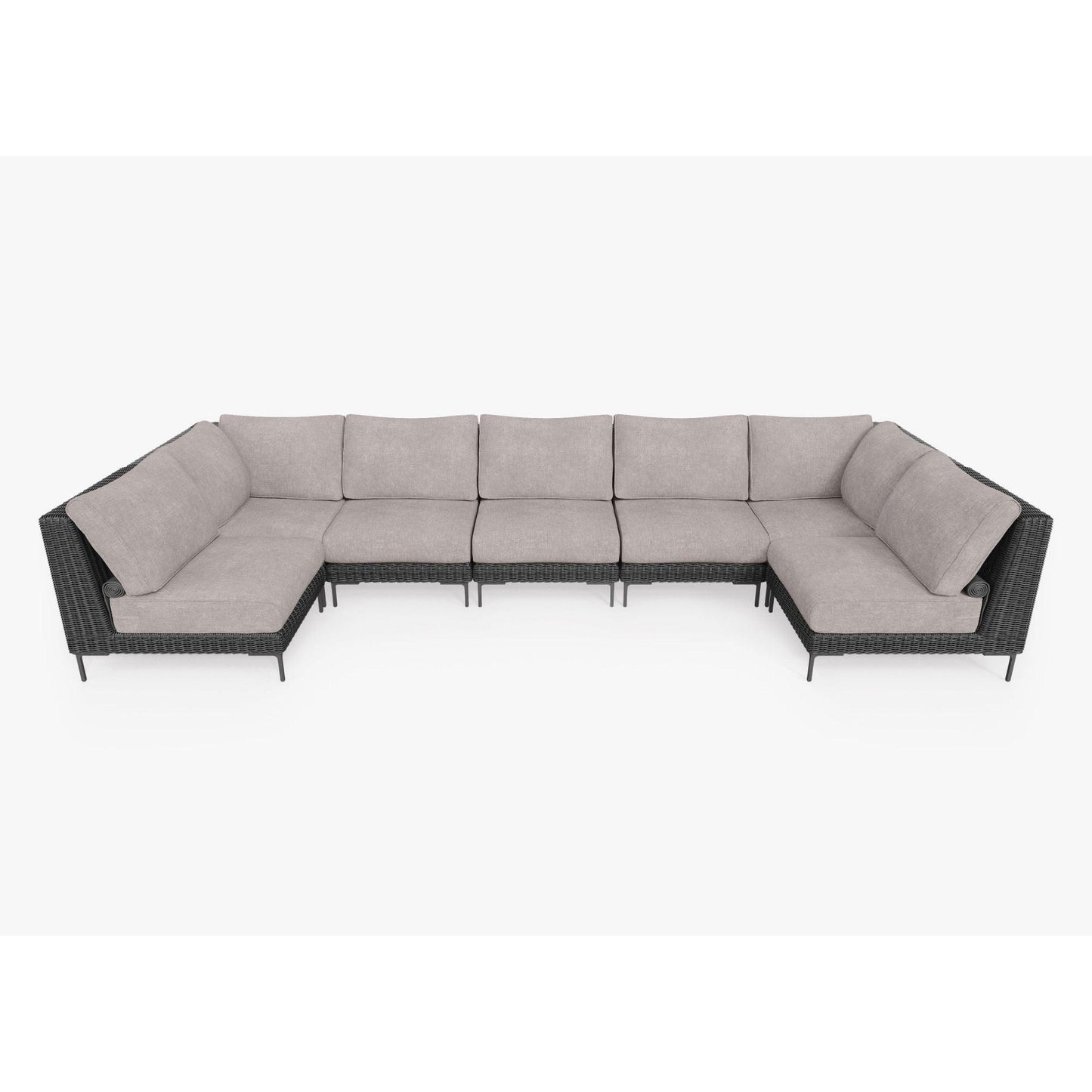 SKU:Black Wicker Outdoor U Sectional - 7 Seat - Sandstone Gray
