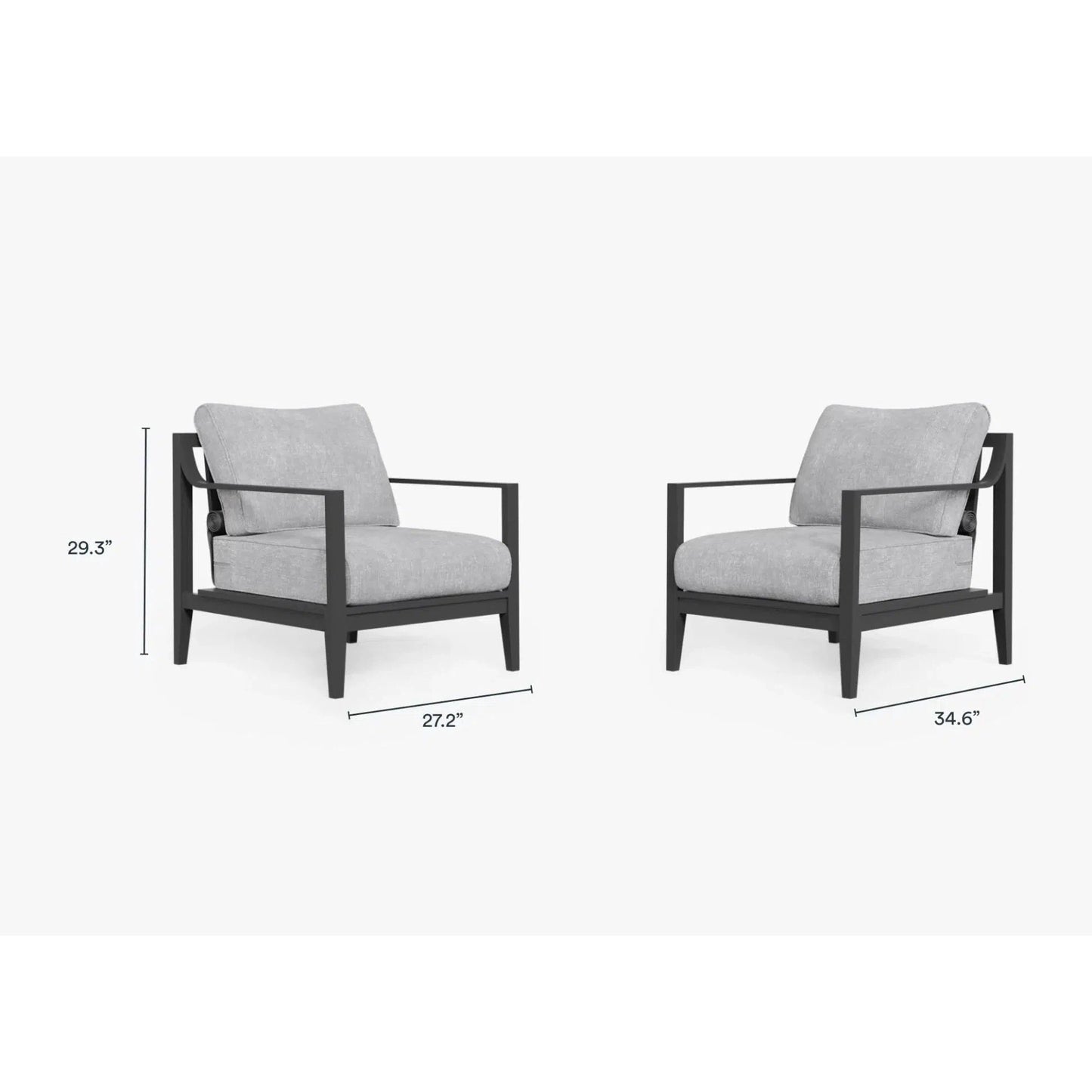 Live Outer 27" Charcoal Aluminum Outdoor Armchair Conversation Set With Pacific Fog Gray Cushion