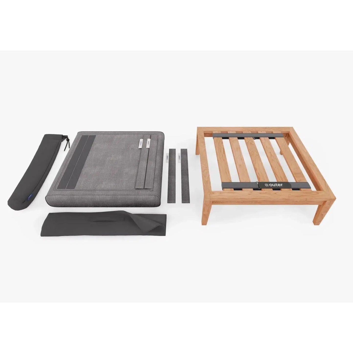 Enjoy indoor comfort outside. Timeless and crafted from naturally durable FSC® certified teak hardwood, Outer’s modular patio furniture invites you to relax on luxuriously comfortable memory foam cushions. The built-in, easy to use OuterShell® cover protects the cushions when not in use, and features Velcro to secure it in place and a handle for convenient transport and storage. No assembly required. The perfect complement to any Outer seating.