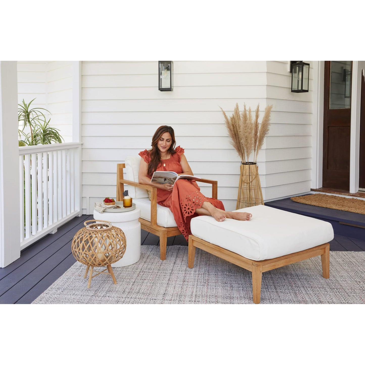 Enjoy indoor comfort outside. Timeless and crafted from naturally durable FSC® certified teak hardwood, Outer’s modular patio furniture invites you to relax on luxuriously comfortable memory foam cushions. The built-in, easy to use OuterShell® cover protects the cushions when not in use, and features Velcro to secure it in place and a handle for convenient transport and storage. No assembly required. The perfect complement to any Outer seating.
