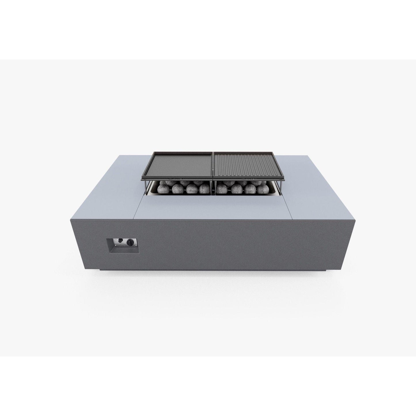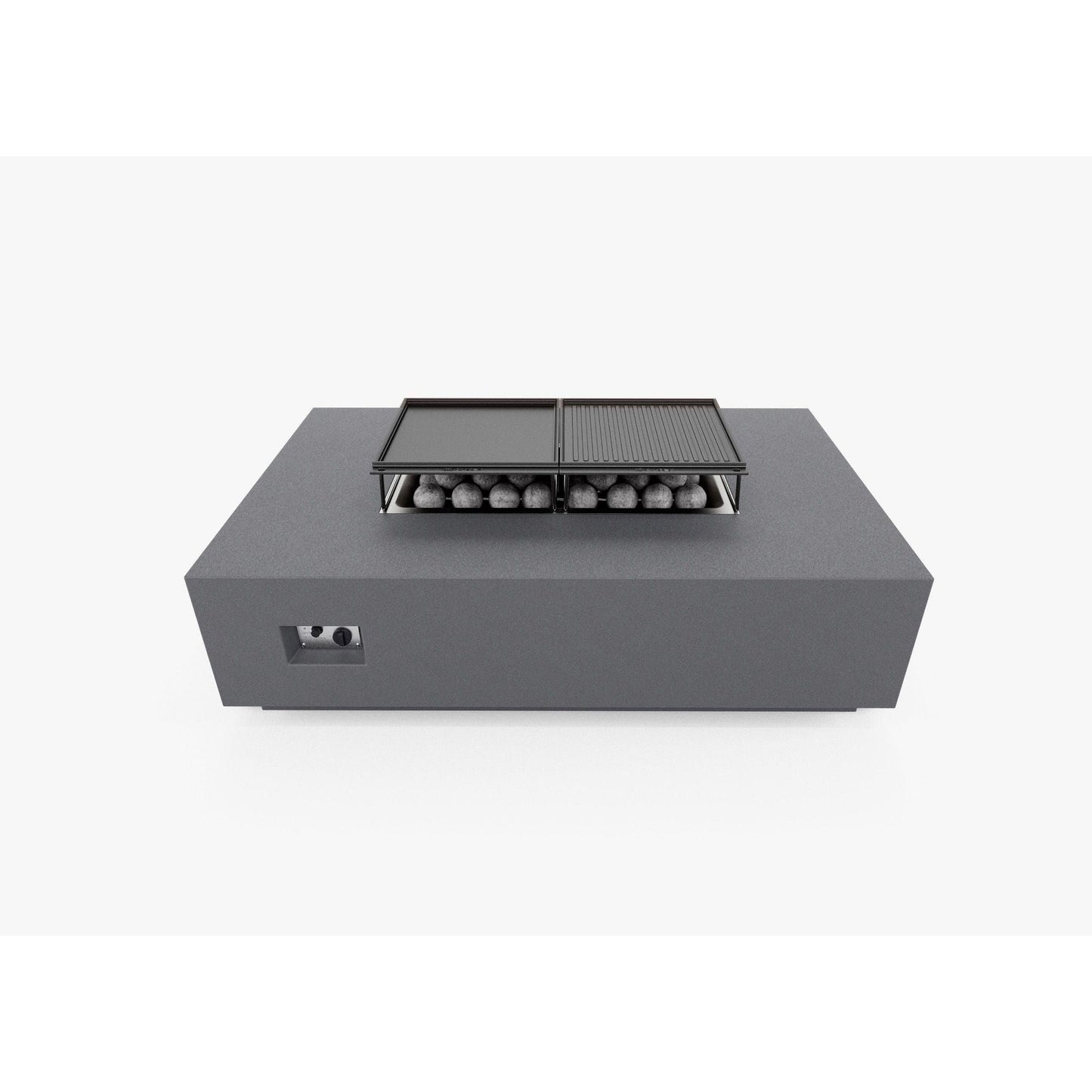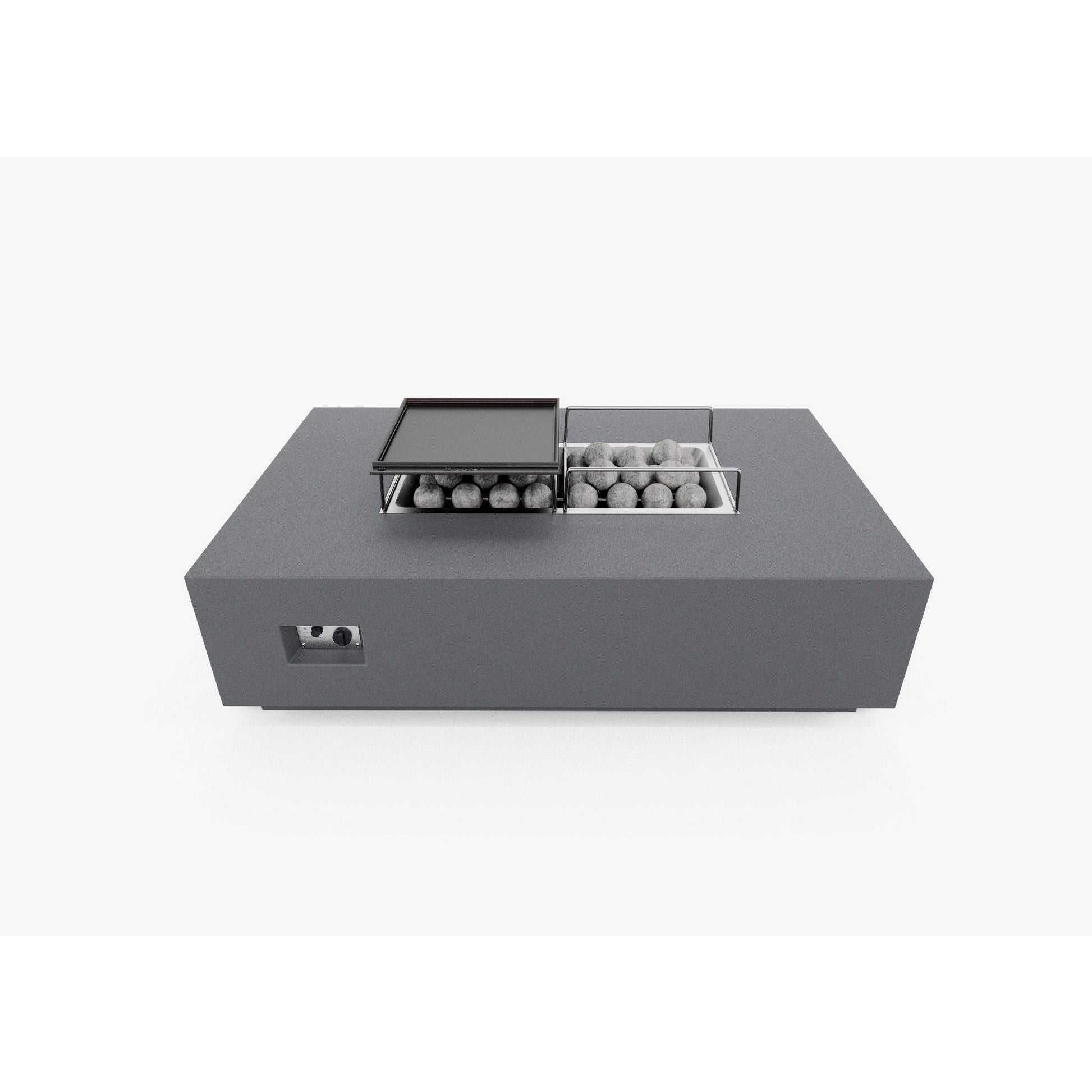 This multifunctional piece brings warmth and fun to your backyard. Enjoy a sleek coffee table with the cover on. Remove it for a cozy fire. Elegant ceramic stones efficiently disperse heat. Add the griddle and you have a space where everyone can cook, eat, and socialize together.