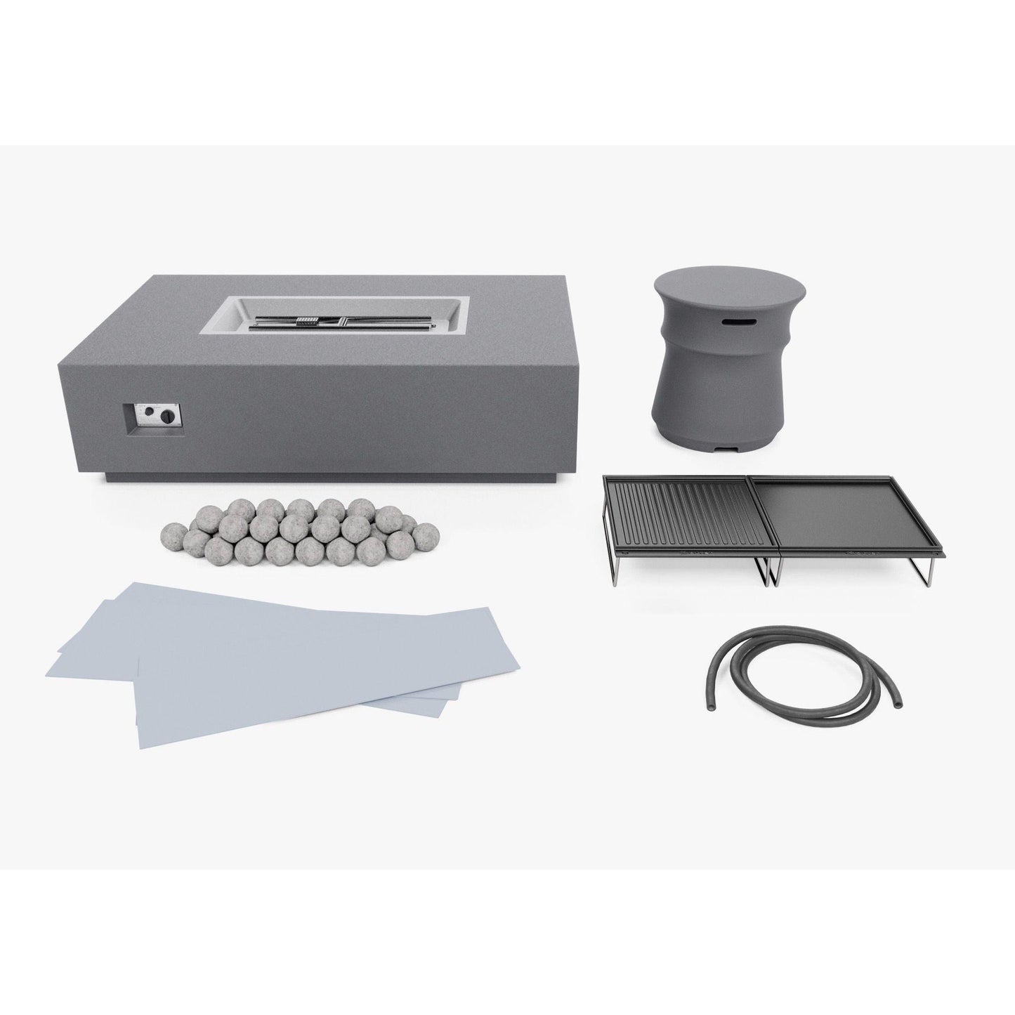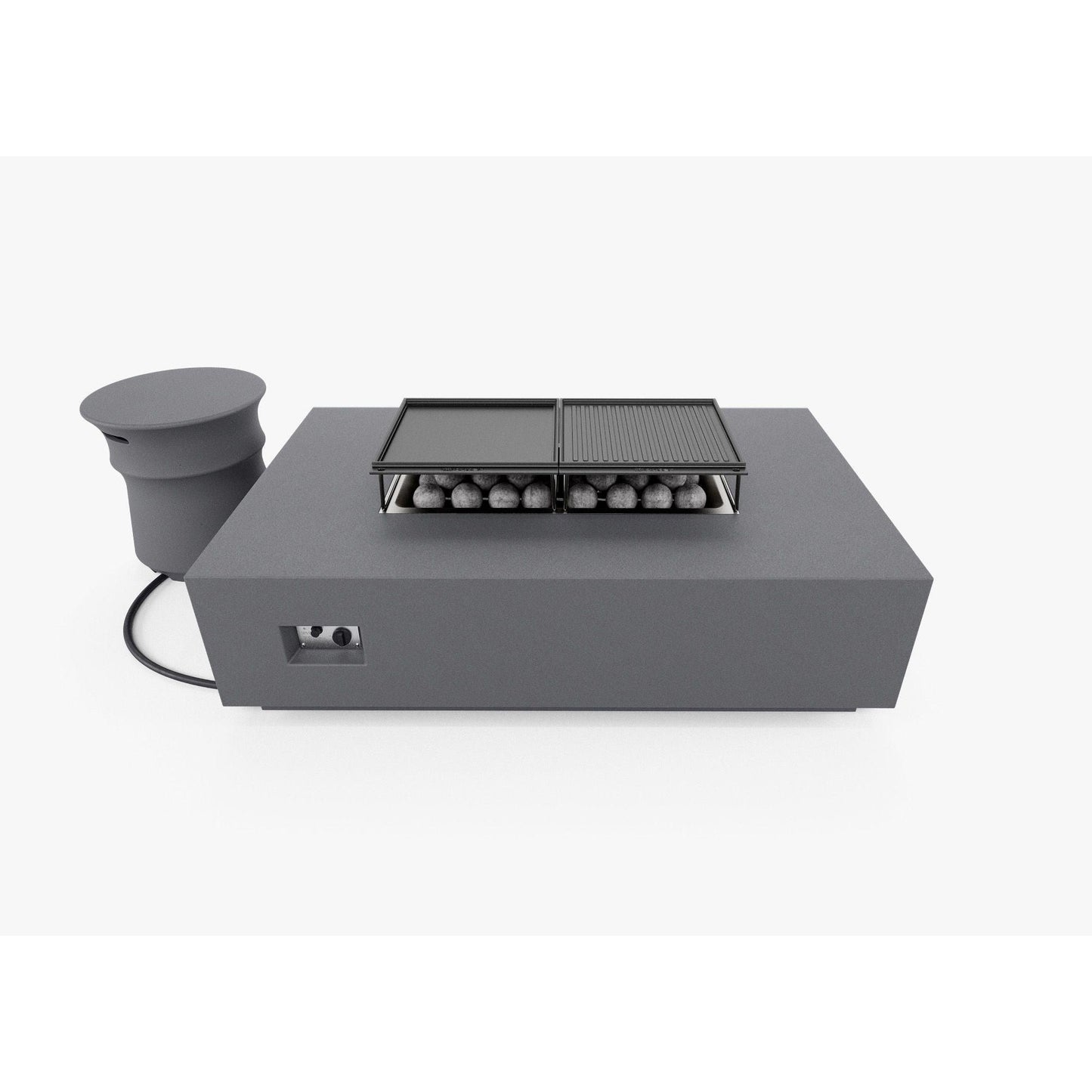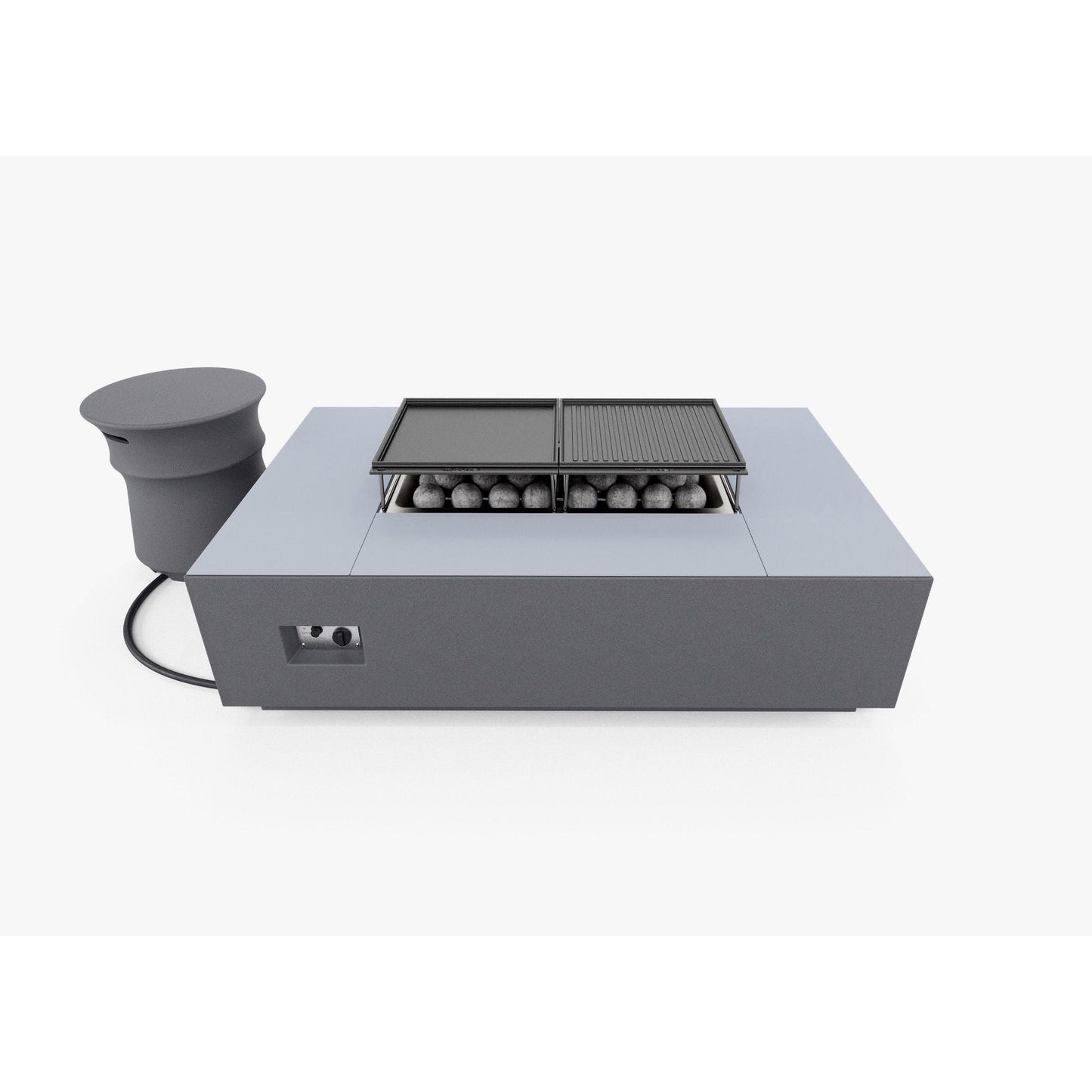 This multifunctional piece brings warmth and fun to your backyard. Enjoy a sleek coffee table with the cover on. Remove it for a cozy fire. Elegant ceramic stones efficiently disperse heat. Add the griddle and you have a space where everyone can cook, eat, and socialize together.