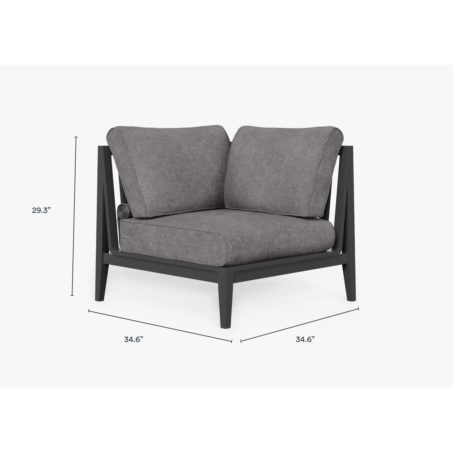 Enjoy indoor comfort outside. Sleek, lightweight, and durably designed with weatherproof aluminum, Outer’s modular furniture invites you to relax on luxuriously comfortable memory foam cushions. The built-in, easy to use OuterShell® cover protects the cushions when not in use, and features Velcro to secure it in place and a handle for convenient transport and storage. This corner chair finishes the left side of your sectional.