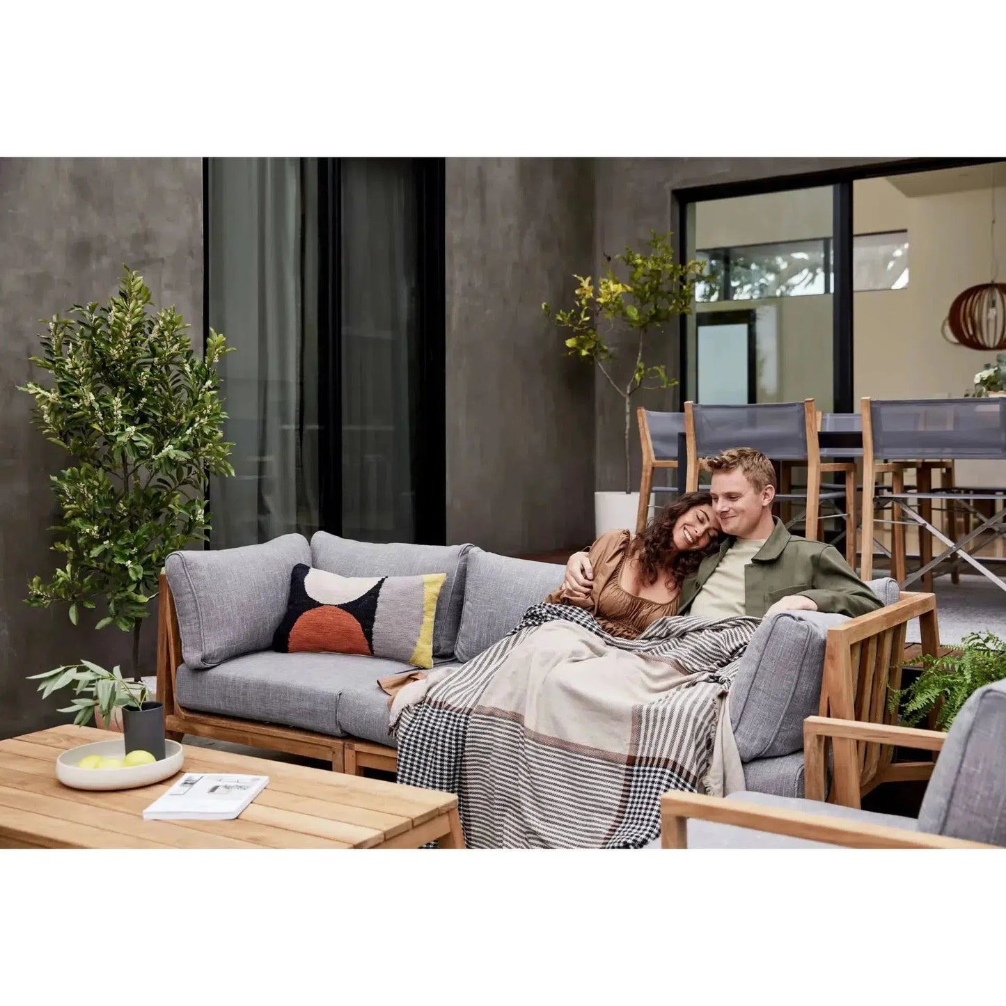 Enjoy indoor comfort outside. Timeless and crafted from naturally durable FSC® certified teak hardwood, Outer’s modular patio furniture invites you to relax on luxuriously comfortable memory foam cushions. The built-in, easy to use OuterShell® cover protects the cushions when not in use, and features Velcro to secure it in place and a handle for convenient transport and storage. No assembly required. Includes 2 corner chairs and 2 armchairs that reconfigure easily.
