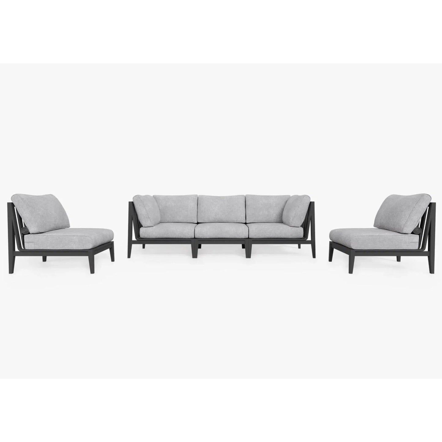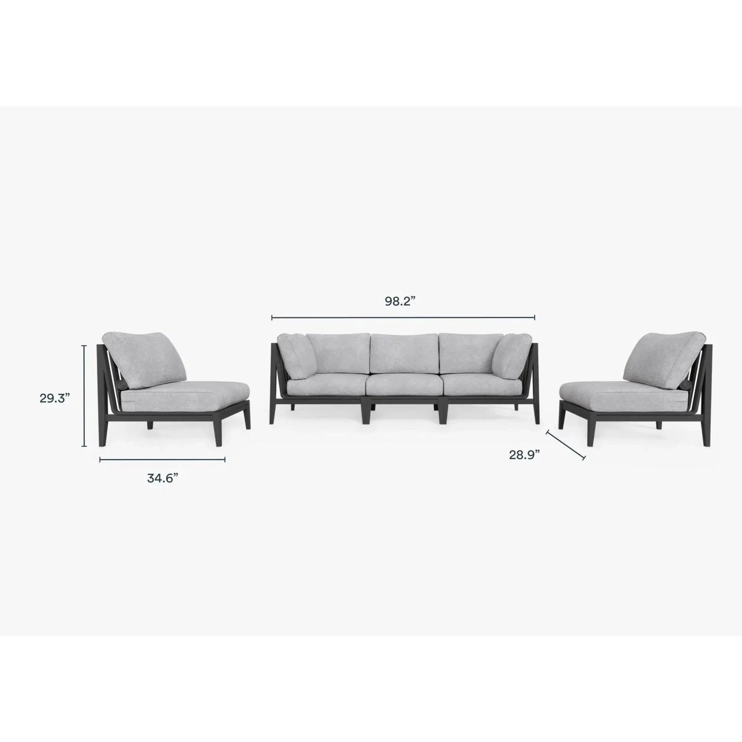 Live Outer 98" Charcoal Aluminum Outdoor Sofa With Armless Chairs and Pacific Fog Gray Cushion (5-Seat)