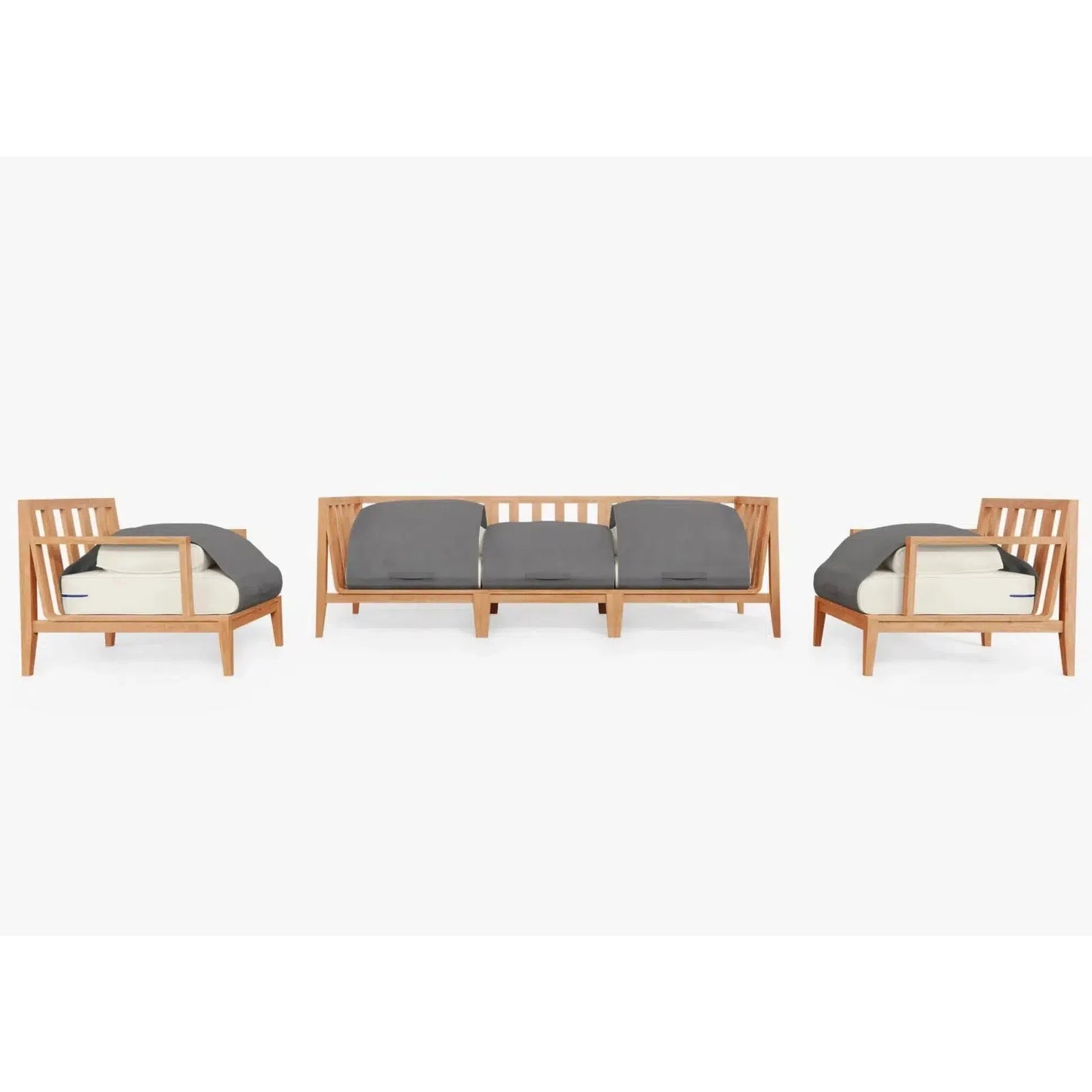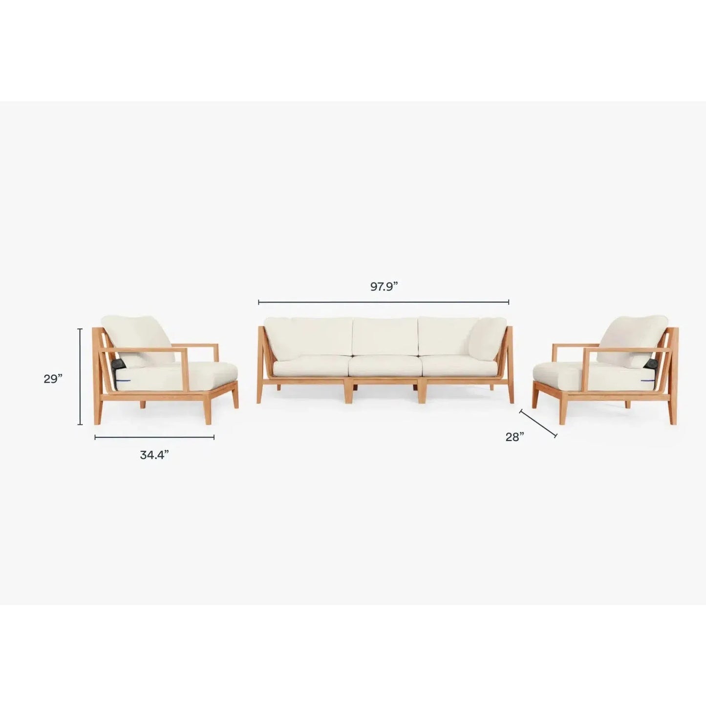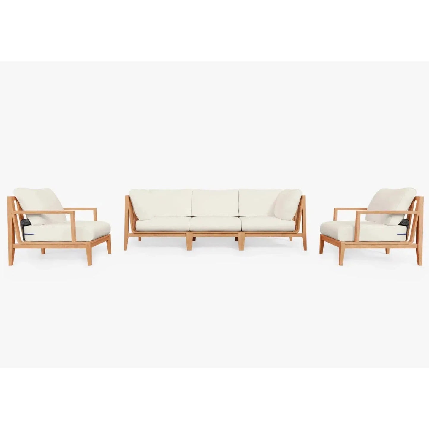 Live Outer 98" Teak Outdoor Sofa With Armchairs and Palisades Cream Cushion (5-Seat)