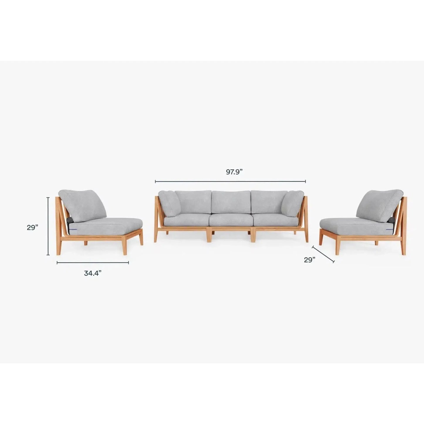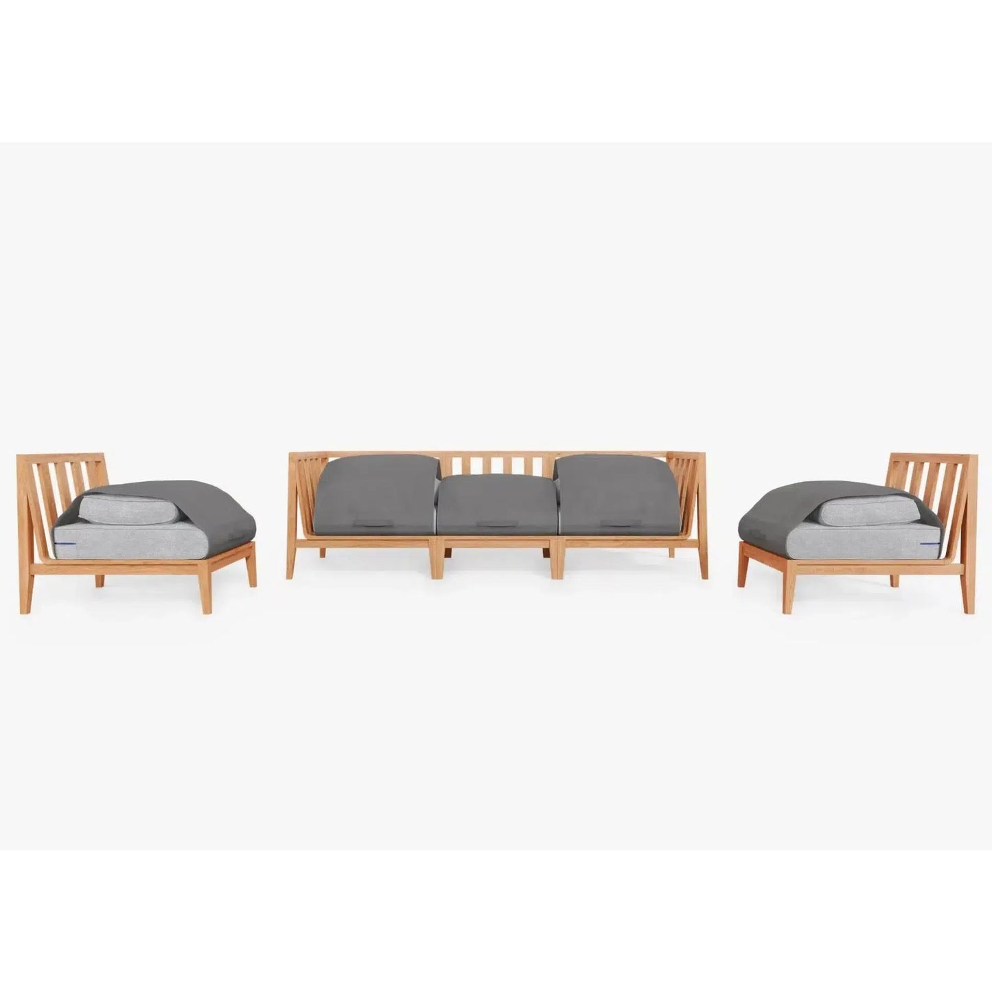 Live Outer 98" Teak Outdoor Sofa With Armless Chairs and Pacific Fog Gray Cushion (5-Seat)