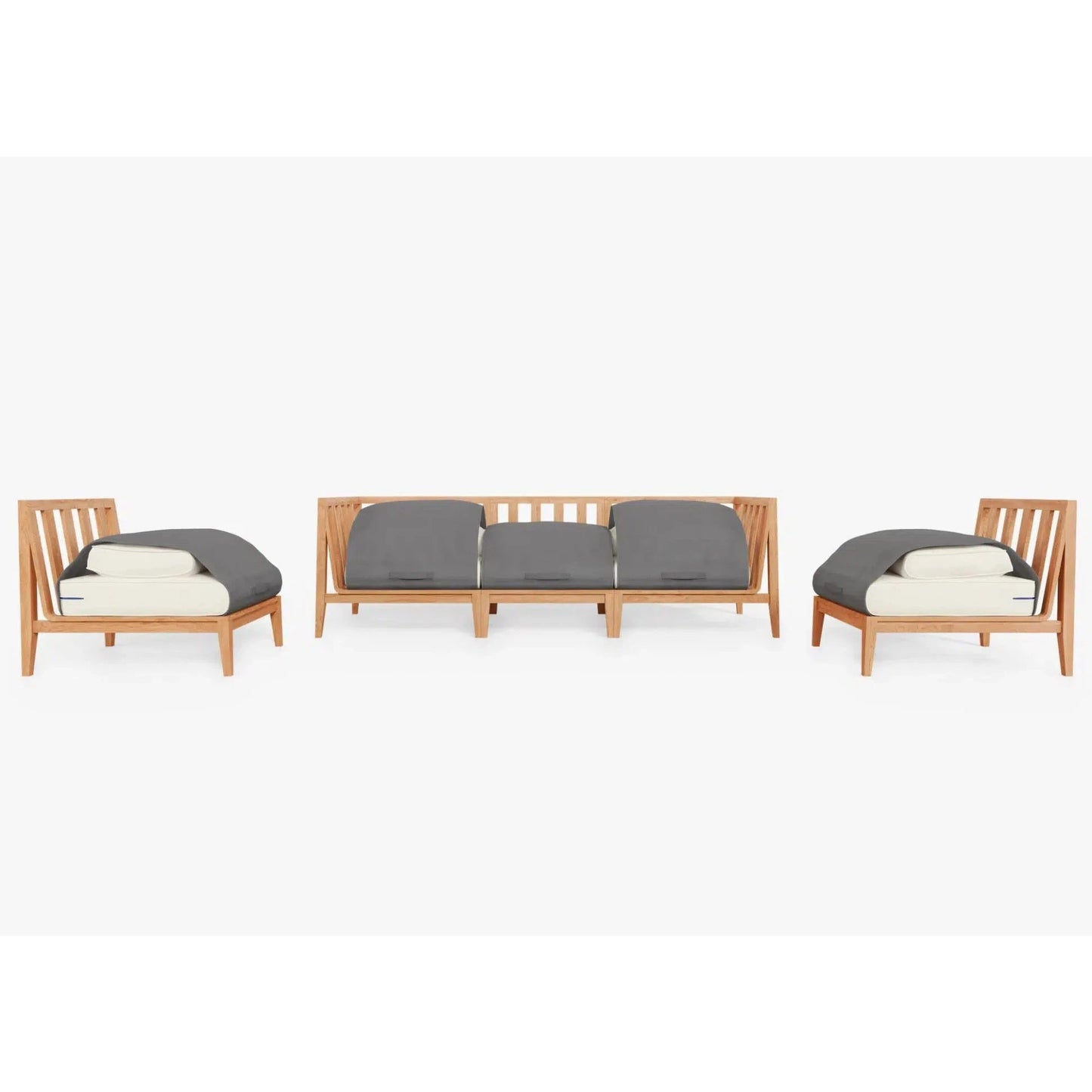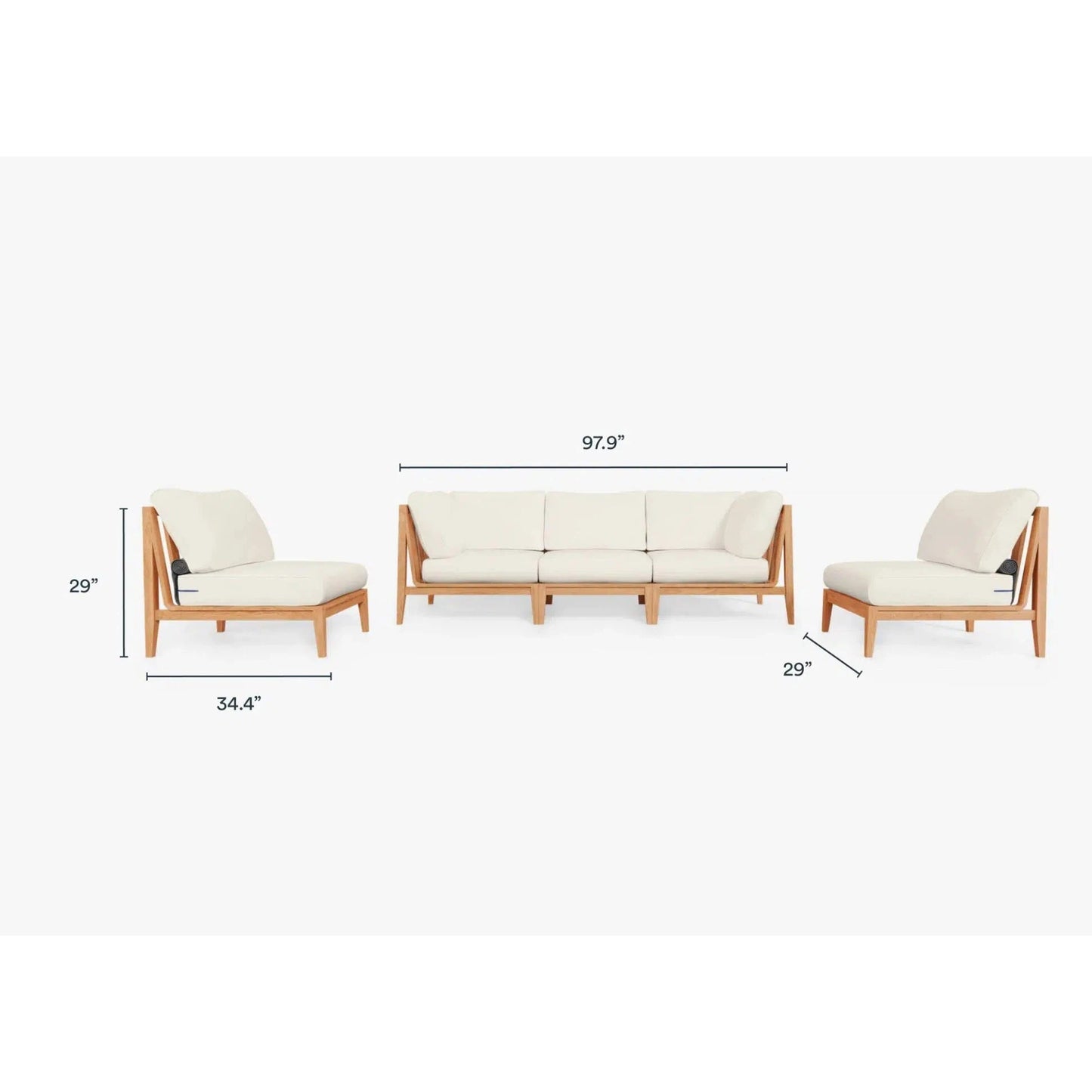 Live Outer 98" Teak Outdoor Sofa With Armless Chairs and Palisades Cream Cushion (5-Seat)