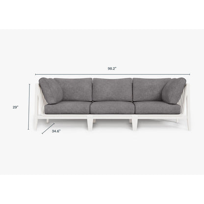 Live Outer 98" White Aluminum Outdoor 3-Seat Sofa With Dark Pebble Gray Cushion
