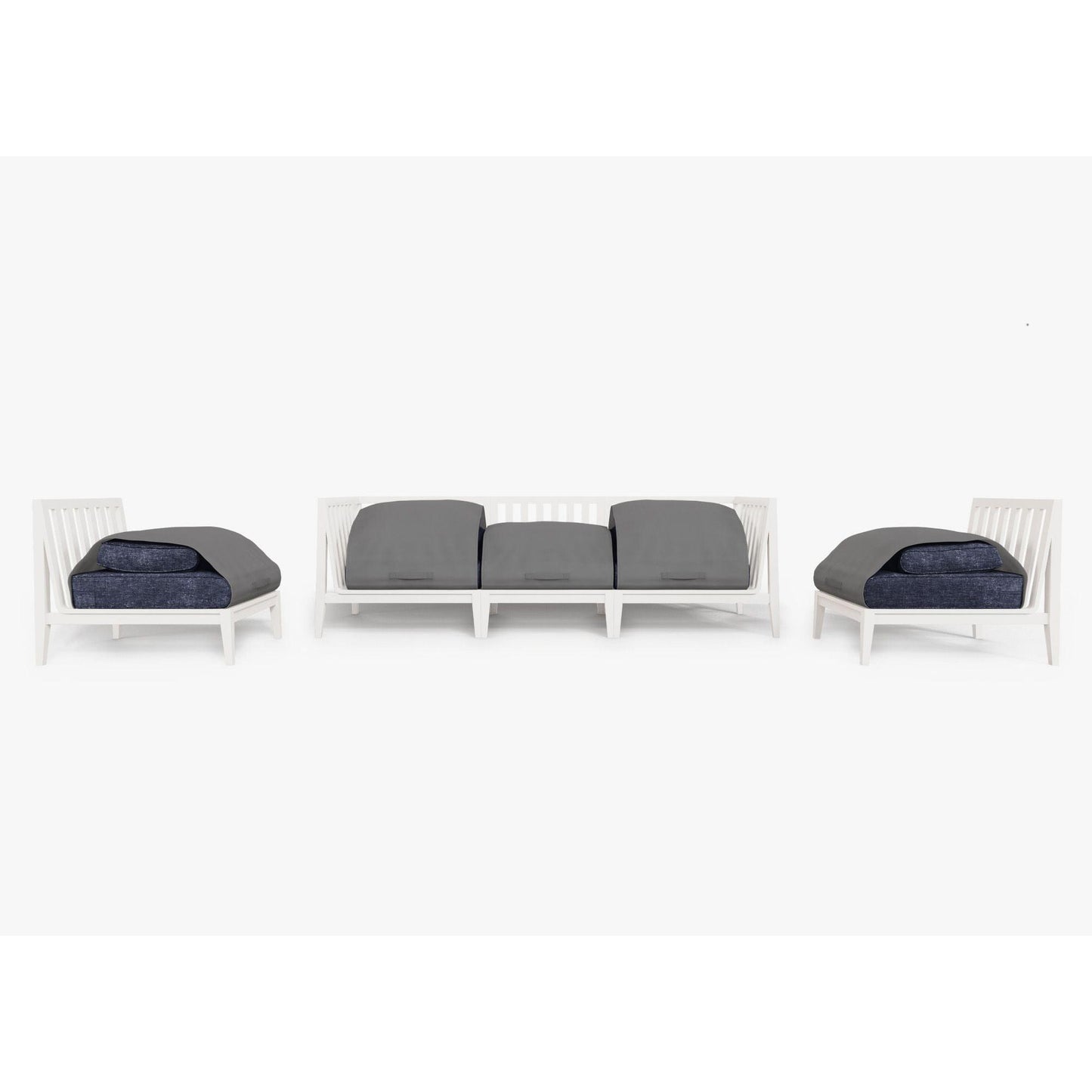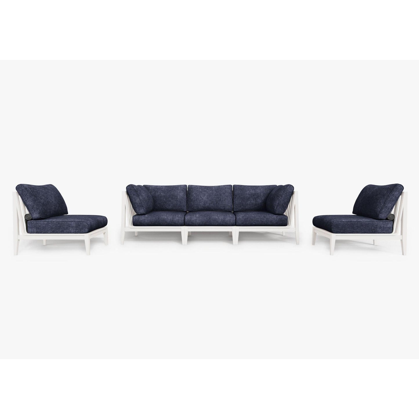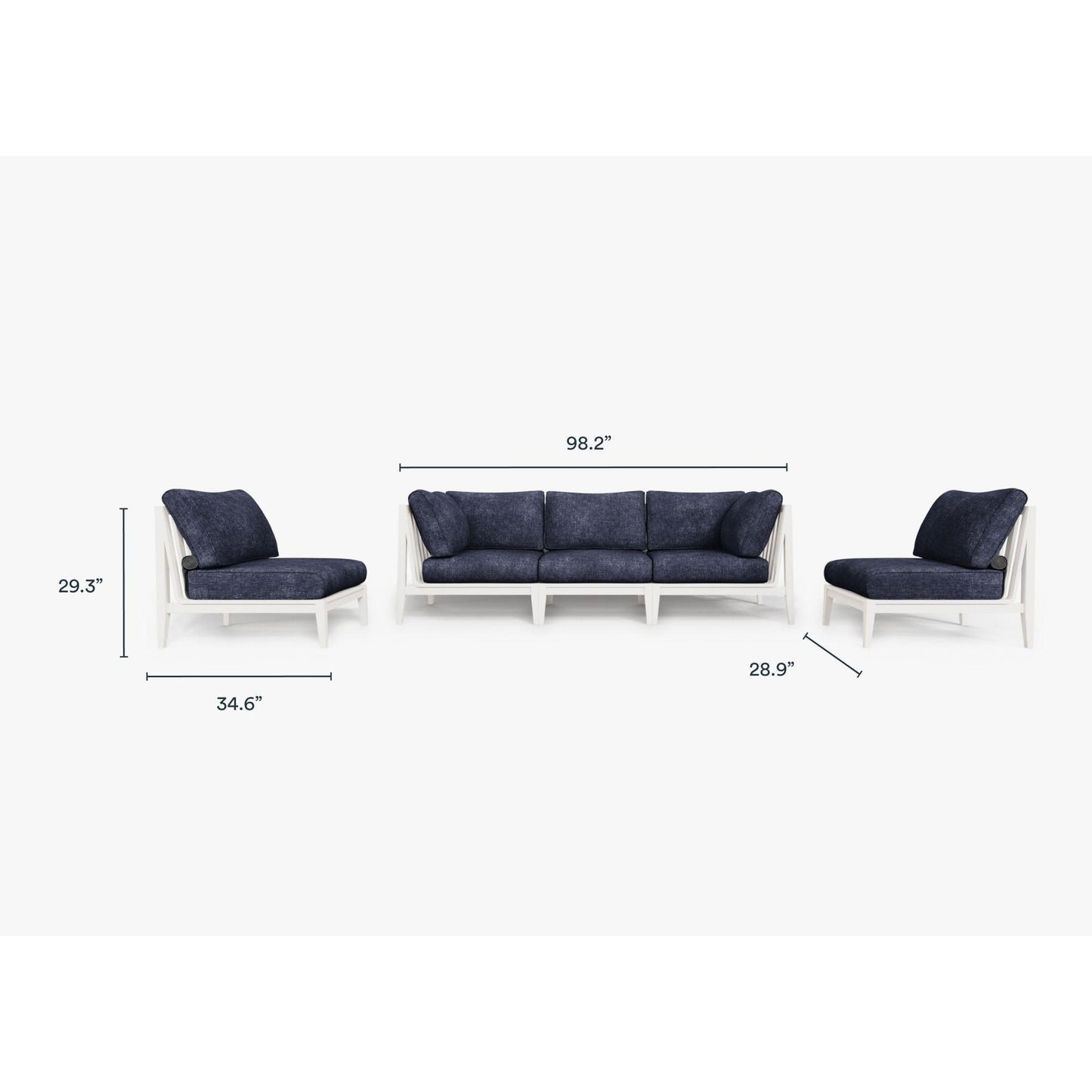 Live Outer 98" White Aluminum Outdoor Sofa With Armless Chairs and Deep Sea Navy Cushion (5-Seat)