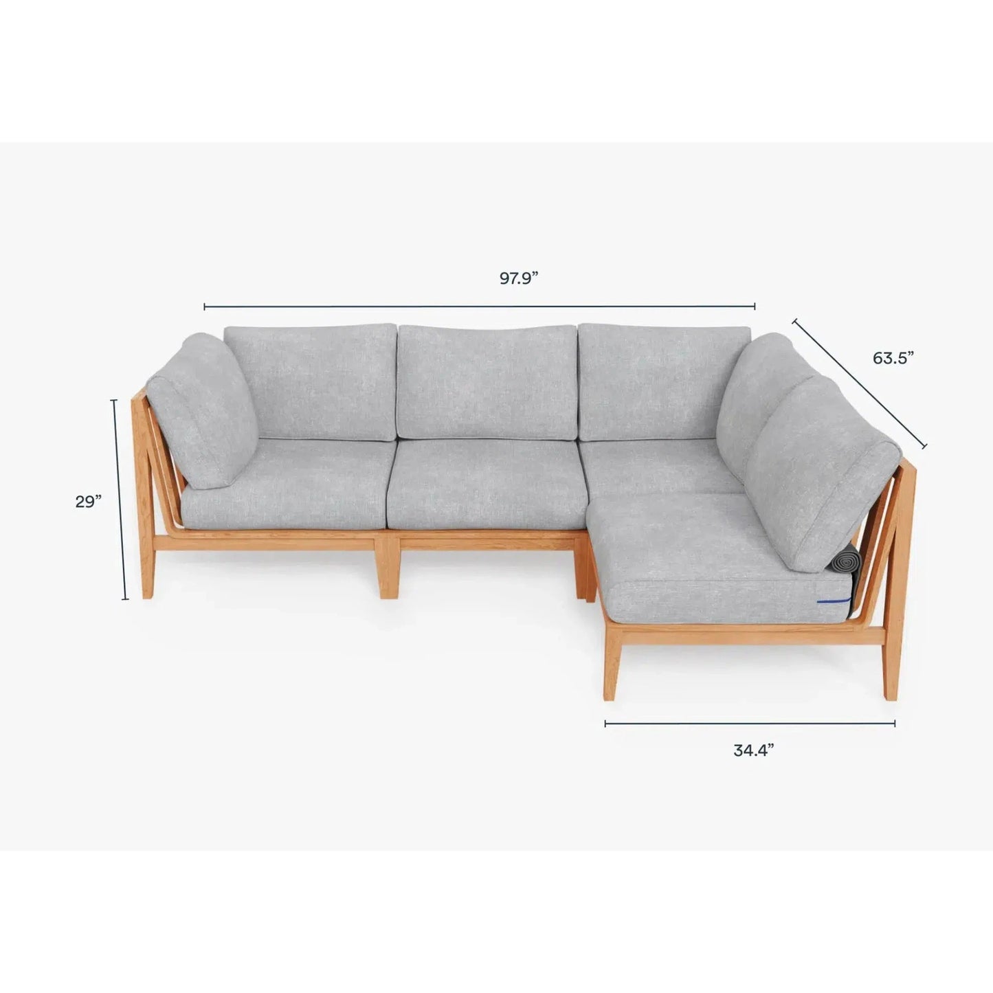 Live Outer 98" x 64" Teak Outdoor L Shape Sectional 4-Seat With Pacific Fog Gray Cushion