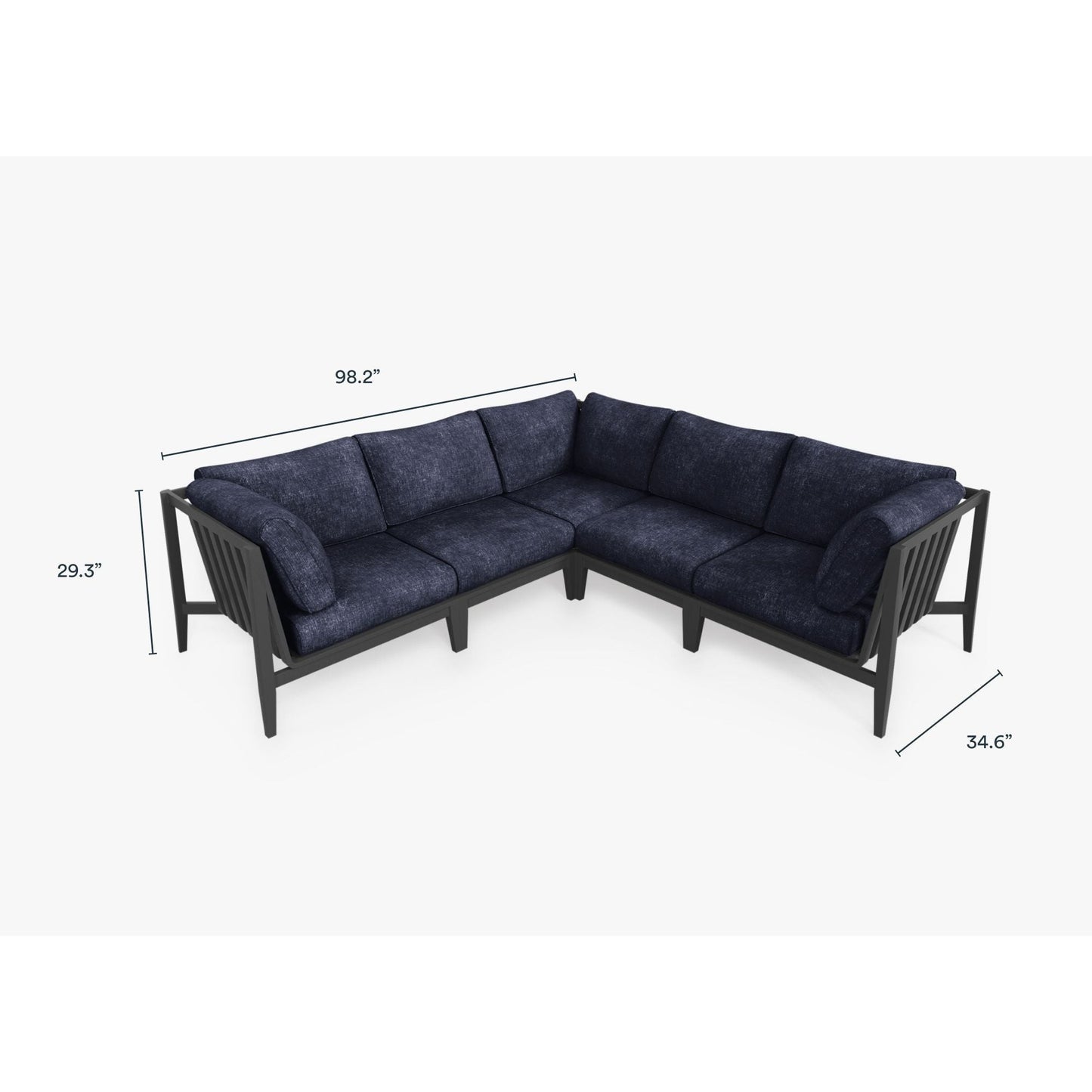 Live Outer 98" x 98" Charcoal Aluminum Outdoor Corner Sectional 5-Seat With Deep Sea Navy Cushion