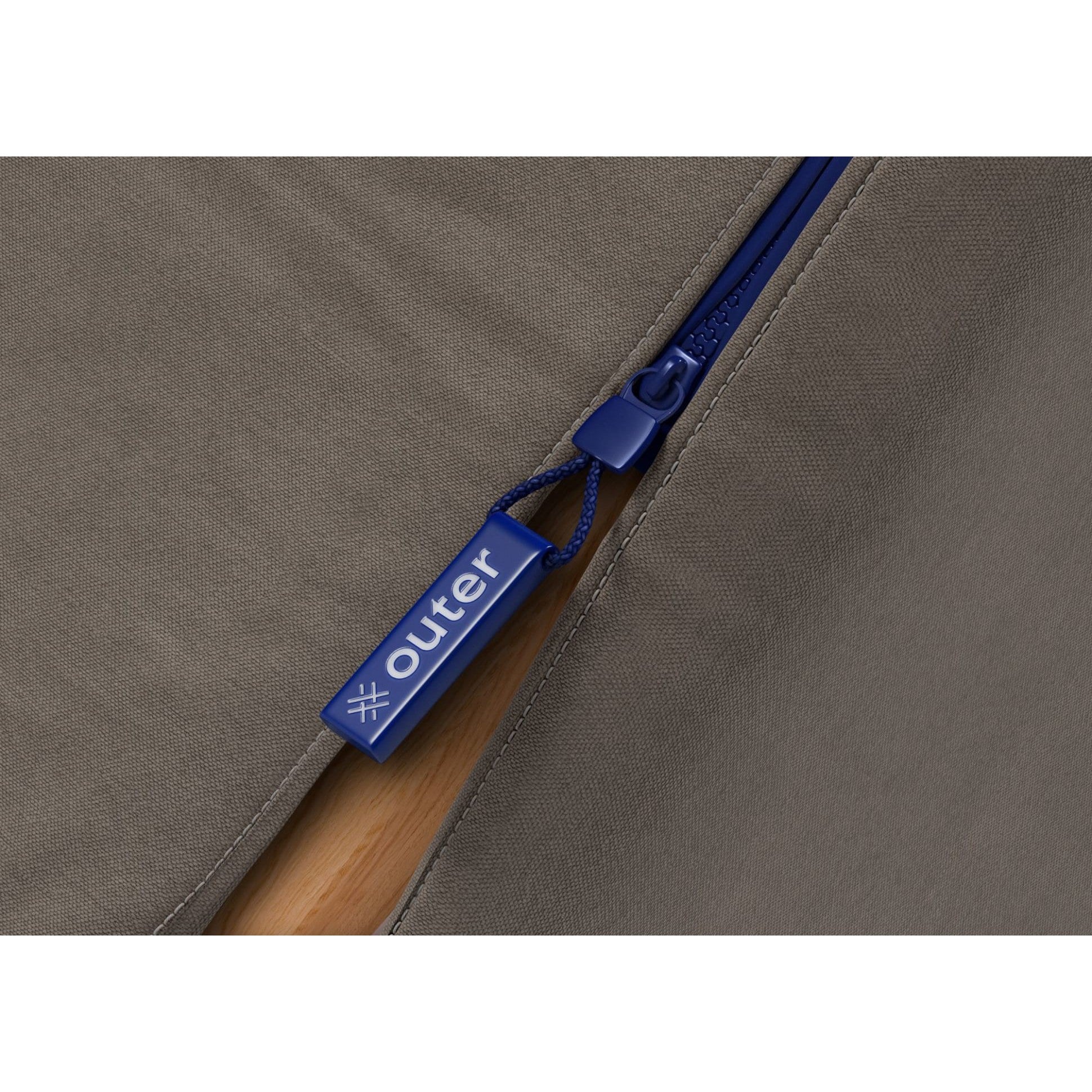 - Forget the fitted-sheet-effect (“which end is up?”). We added a water-resistant zipper in Outer blue to help you put the cover on correctly.