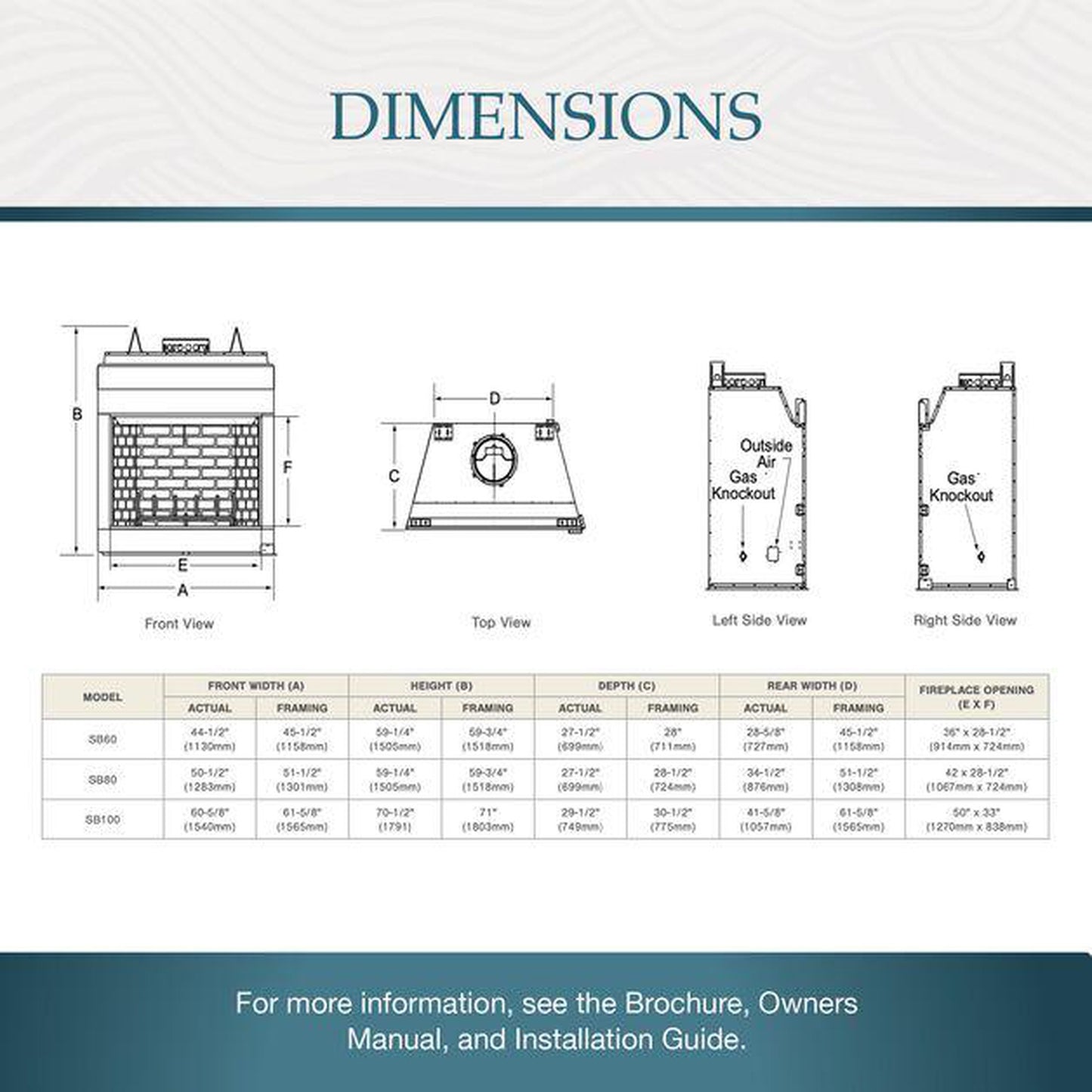 | Fireplace Opening (E x F) | 36" x 28-1/2" (914mm x 724mm) |