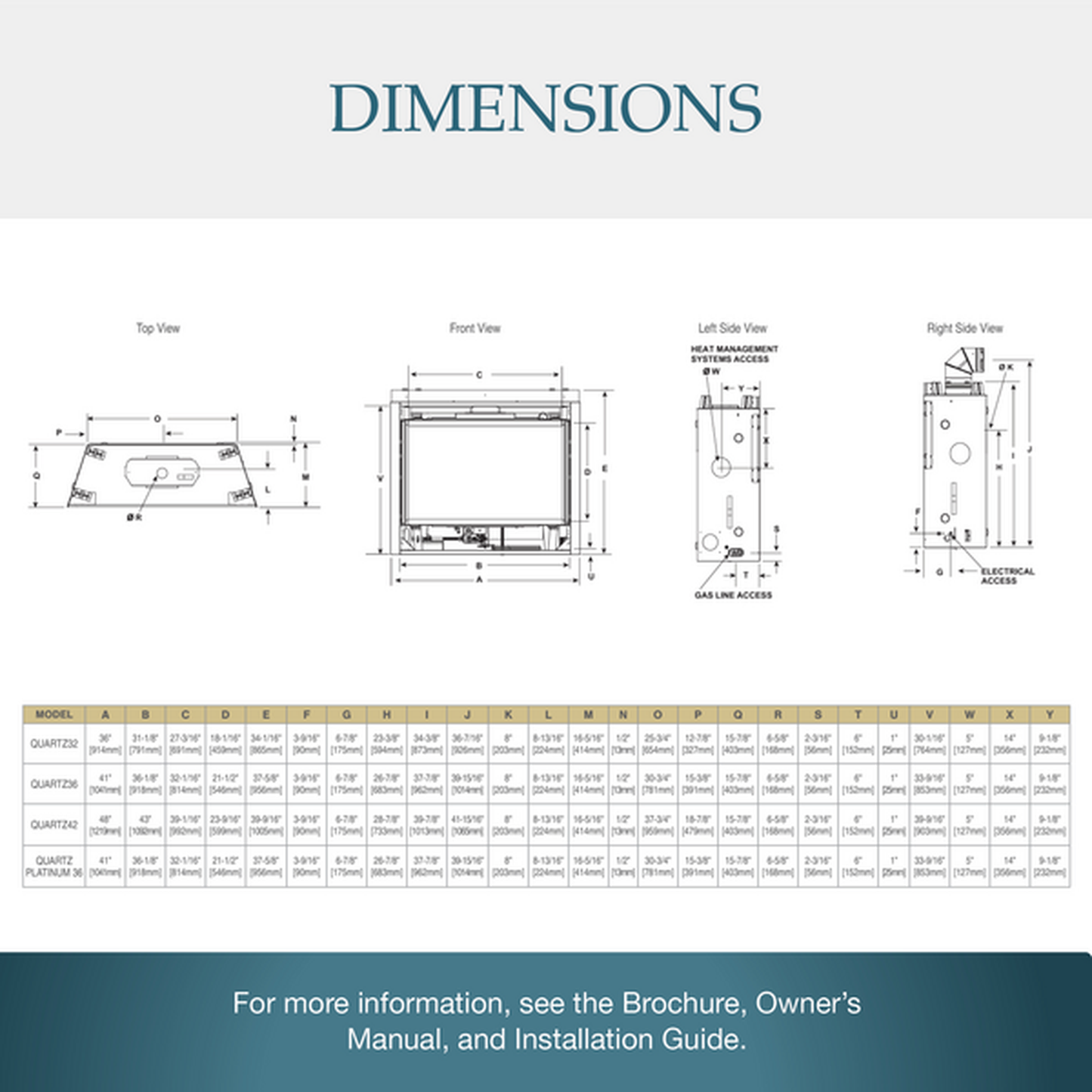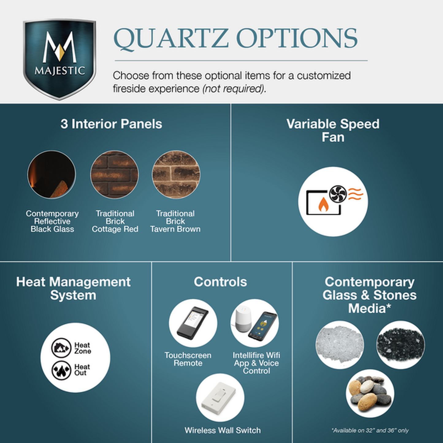 - 32", 36" or 42" models (Quartz) & 36" (Quartz Platinum)