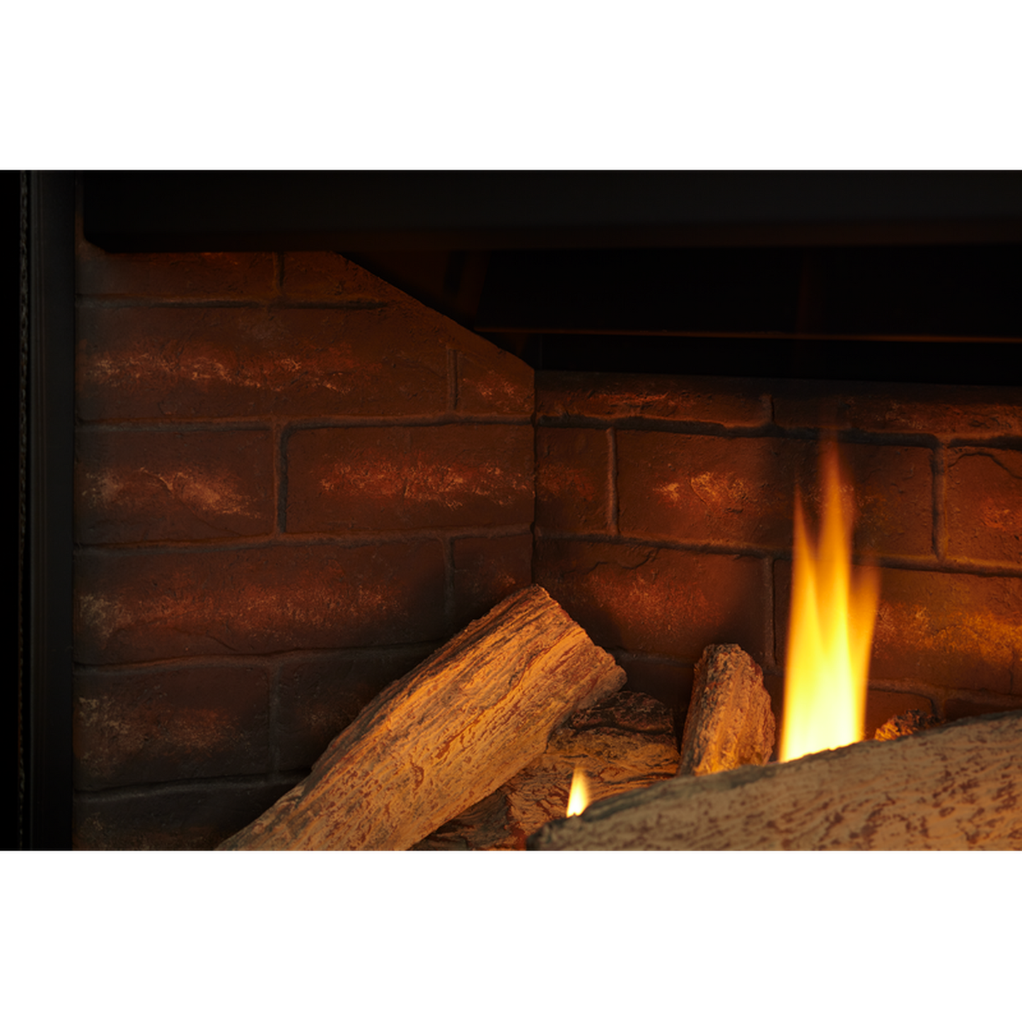 - Bold flames through realistic logs and LED illuminated ember bed
