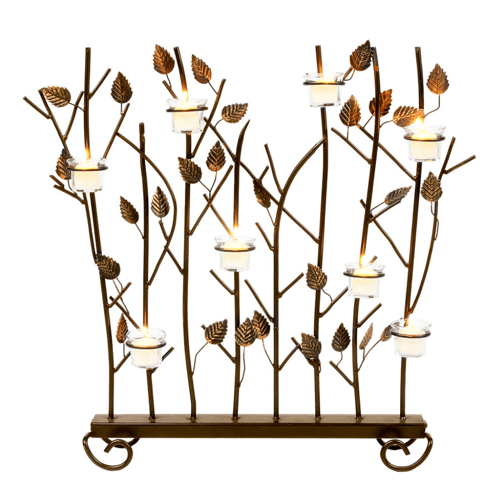 Let the fireplace remain the focal point of the room, even in the summer months with a summer screen. The Votive Rings Summer Screen features eight rings designed to hold votive candles nestled in its bronze branches, to give the hearth a welcoming glow without the heat of a fire.