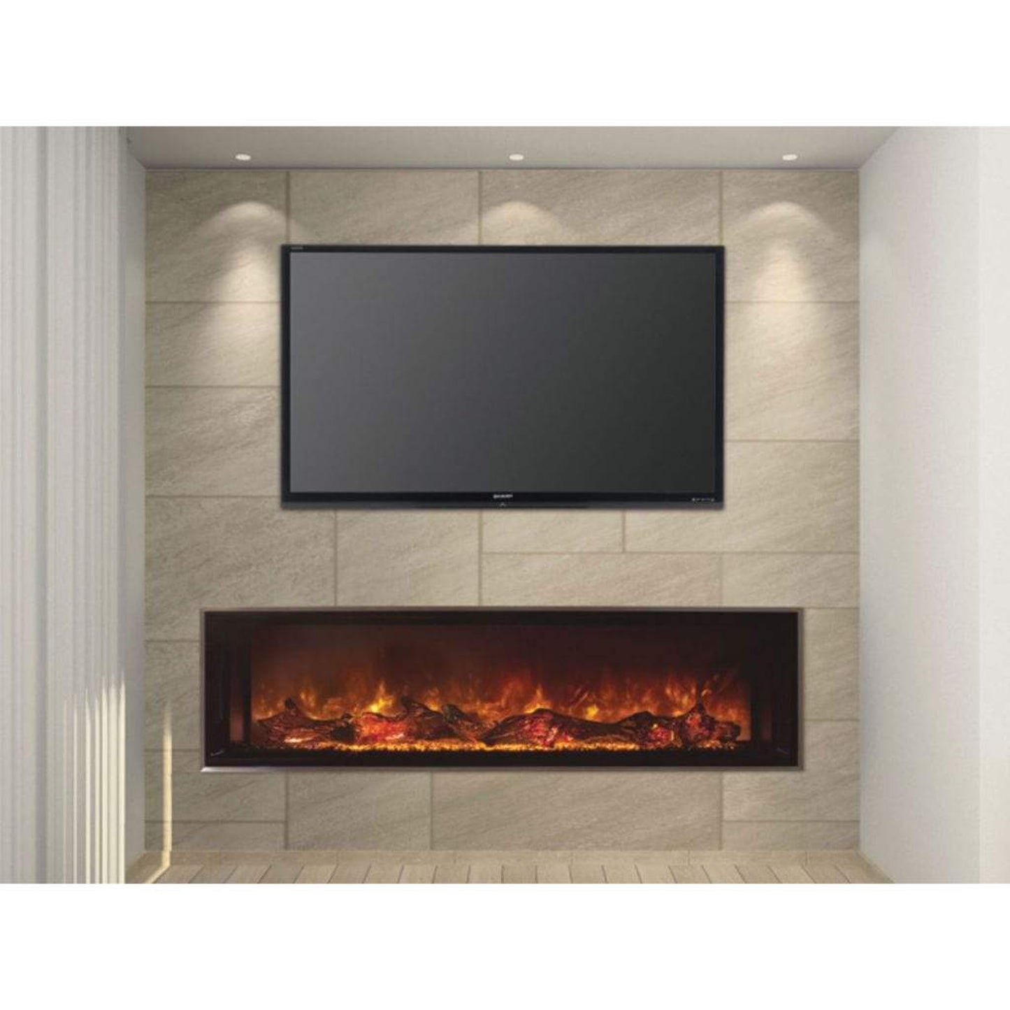 The Landscape FullView 2 Series built-in electric fireplace is the first of its kind creating a perfect substitute for a linear gas fireplace. This unique frameless design allows for edge to edge flame presentation as well as unlimited surround capabilities. Available in 5 different lengths for any application as well as 2 customizable flame bed options for different fit and finishes. An optional 2 stage heater is also included for supplemental heat up to 450 square feet.