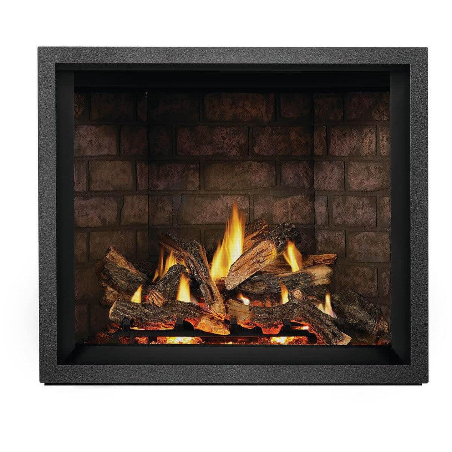 - Clean face design with full firebox flame