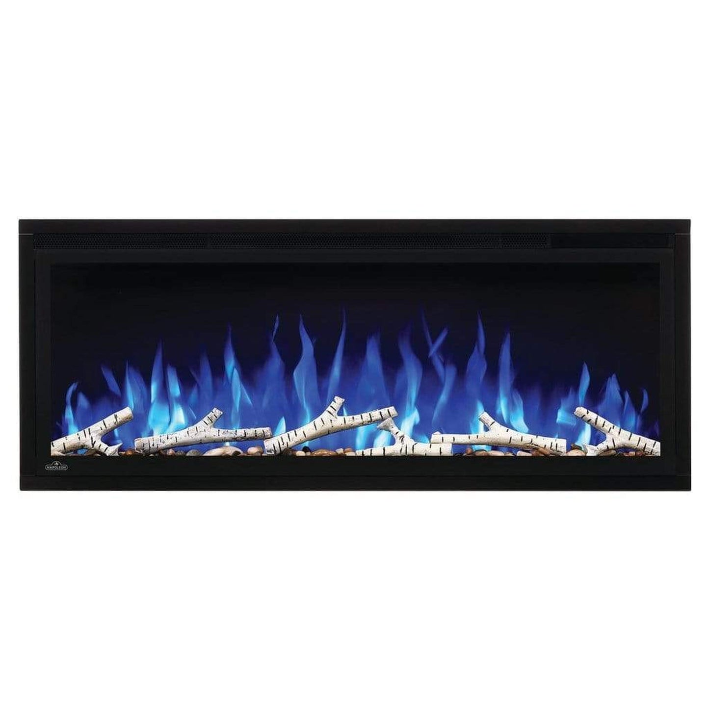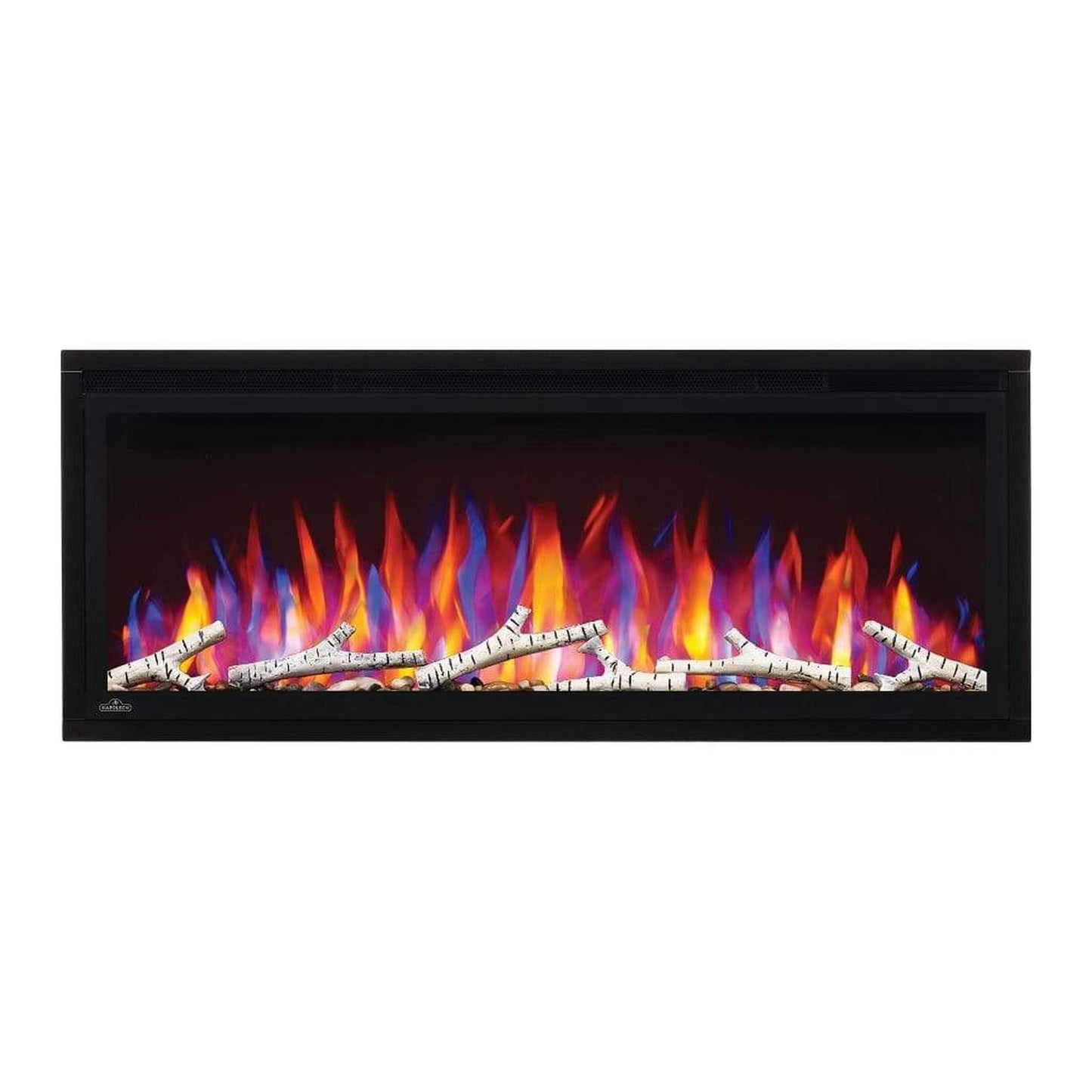 Make a statement with the Napoleon Entice™ 42 Electric Fireplace. This fireplace puts out an incredible amount of heat, glittering with multicolored flames and a crystal ember bed. You don't need a specialist or a gas fitter for this expansive beauty, just hang on the wall and plug in for instant transformation of your space. Traditional orange flames, or cool blue flames, or a combination of the two will set the mood. The shallow depth means that this fireplace doesn't intrude into your living space, but simply accents it with the expansive view of the fire. Place this electric fireplace anywhere you want to make a huge impact, perfectly suited for either your home or a commercial setting.