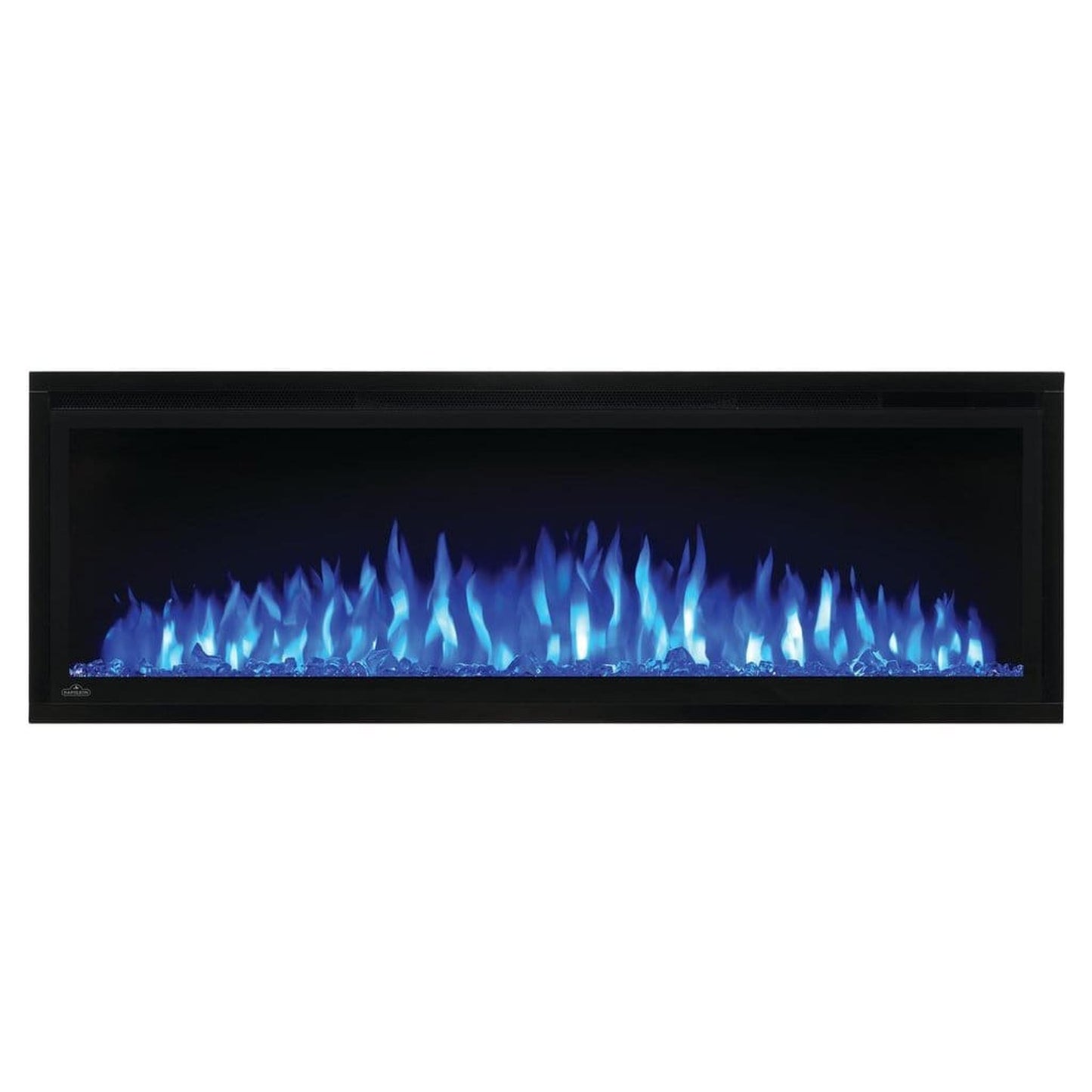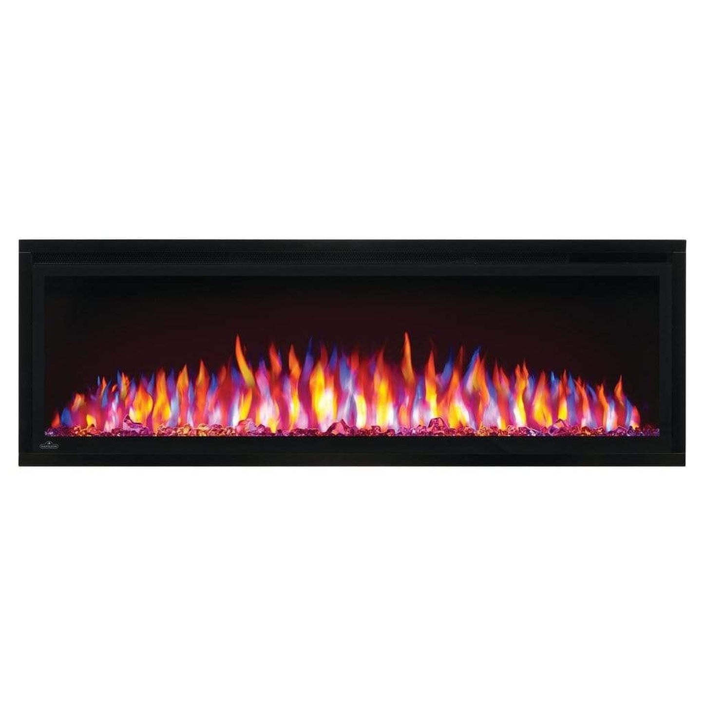 Make a statement with the Napoleon Entice™ 50 Electric Fireplace. This fireplace puts out an incredible amount of heat, glittering with multicolored flames and a crystal ember bed. You don't need a specialist or a gas fitter for this expansive beauty, just hang on the wall and plug in for instant transformation of your space. Traditional orange flames, or cool blue flames, or a combination of the two will set the mood. The shallow depth means that this fireplace doesn't intrude into your living space, but simply accents it with the expansive view of the fire. Place this electric fireplace anywhere you want to make a huge impact, perfectly suited for either your home or a commercial setting.