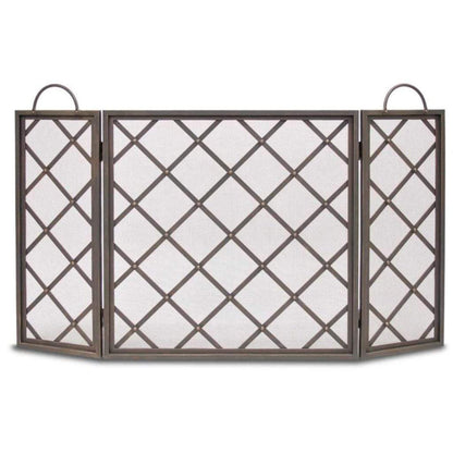Pilgrim 54" Distressed Bronze Iron Weave Tri-Panel Screen