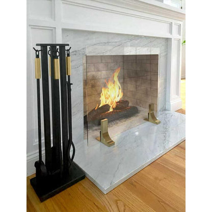 The Dorset fireplace screen is constructed with high heat-treated tempered glass for a clear view of the fire. The glass is supported by perfectly balanced curved brass legs that will add an instant upgrade to your fireplace.