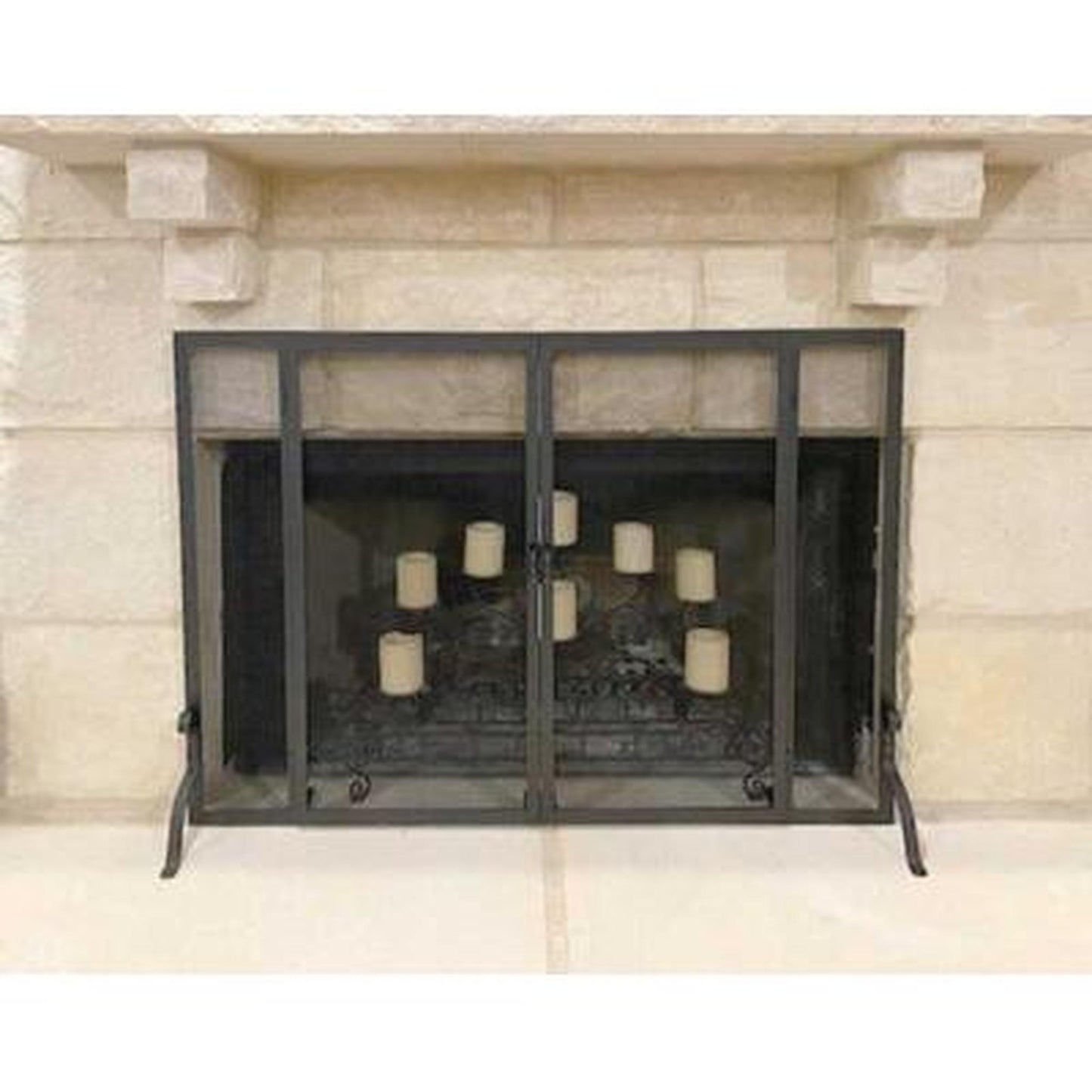 An all-time favorite of the American hearth. This screen is designed to fit most fireplace openings. Durable, heavy-duty solid iron construction complements the screen’s sleek, hand-forged handles that sit at the center of the large doors for easy access to the fire. Smooth bullet-hinged doors allow for the door to completely open, and quality block magnets will hold them securely closed.