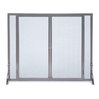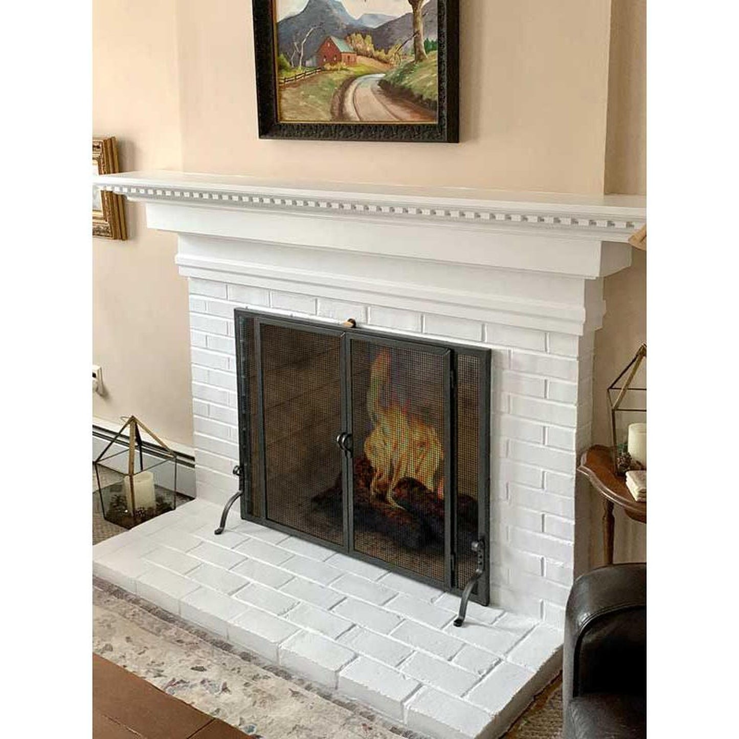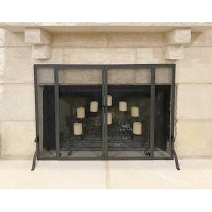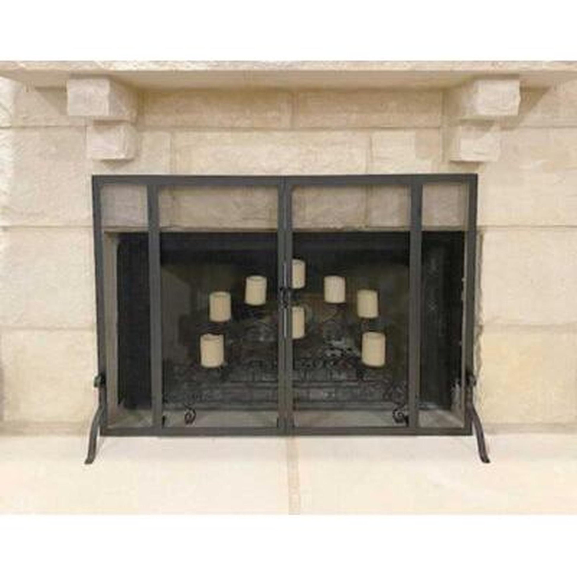 An all-time favorite of the American hearth. This screen is designed to fit most fireplace openings. Durable, heavy-duty solid iron construction complements the screen’s sleek, hand-forged handles at the center of the large doors for easy access to the fire. Smooth bullet-hinged doors allow for the door to completely open, and quality block magnets will hold them securely closed.
