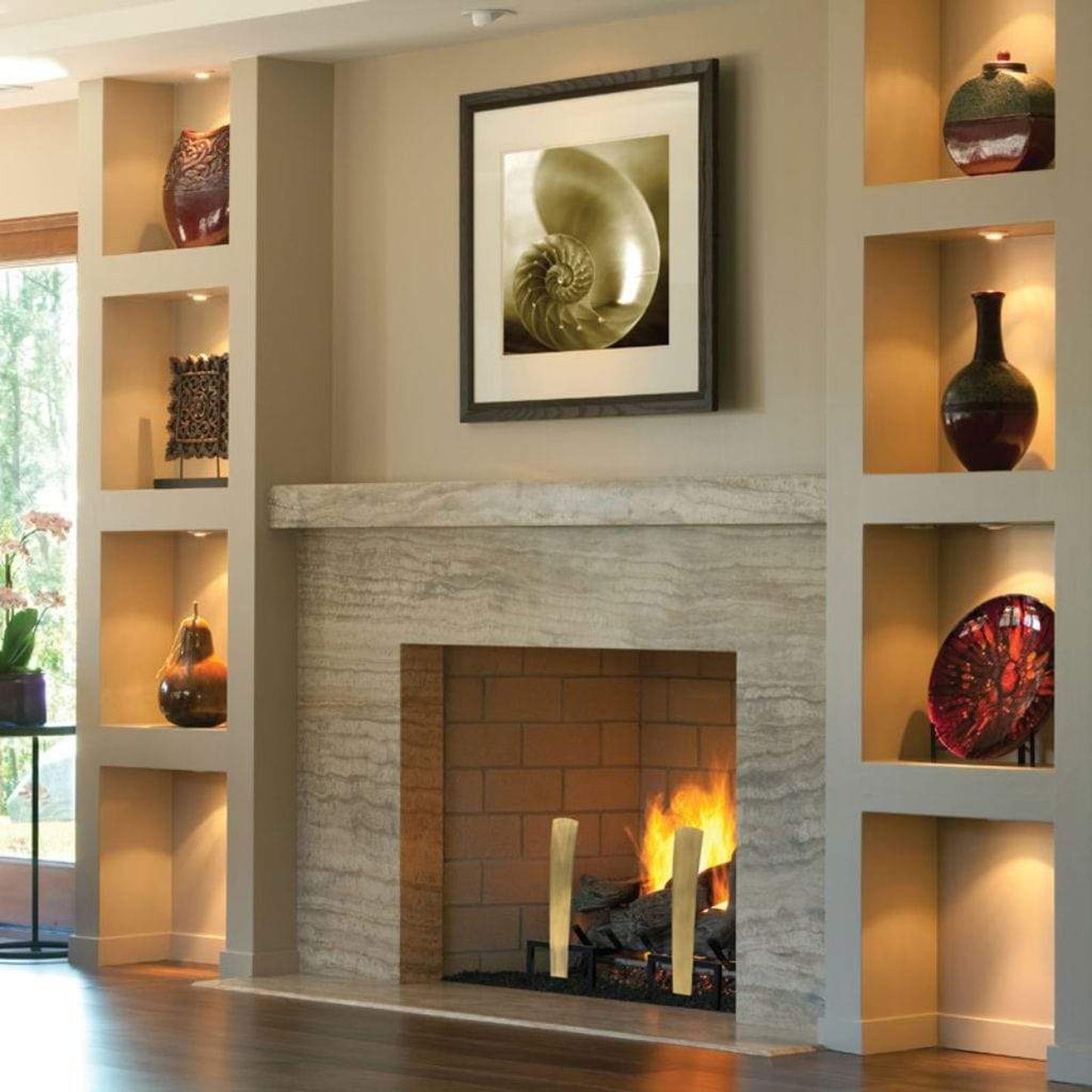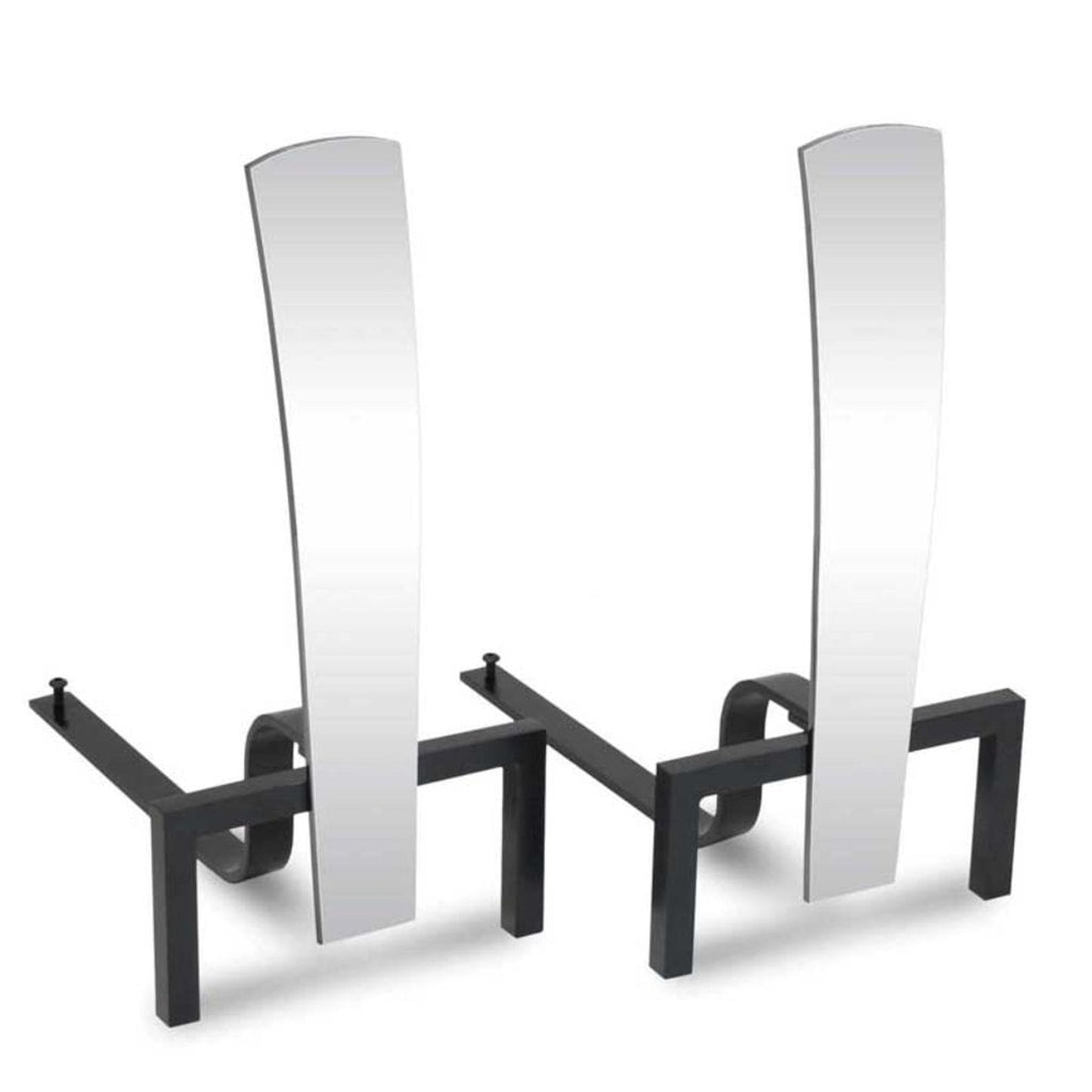 These beautifully plated andirons are not recommended for use in traditional wood-burning fires. If you burn wood, remove them prior to lighting your fire. Andirons are approved for use with gas-burning logs. Logs should never be placed directly on top of andiron leg supports and should always be used in conjunction with an approved burn grate. Stylish modern design with a pedestal base. Available in three finishes.