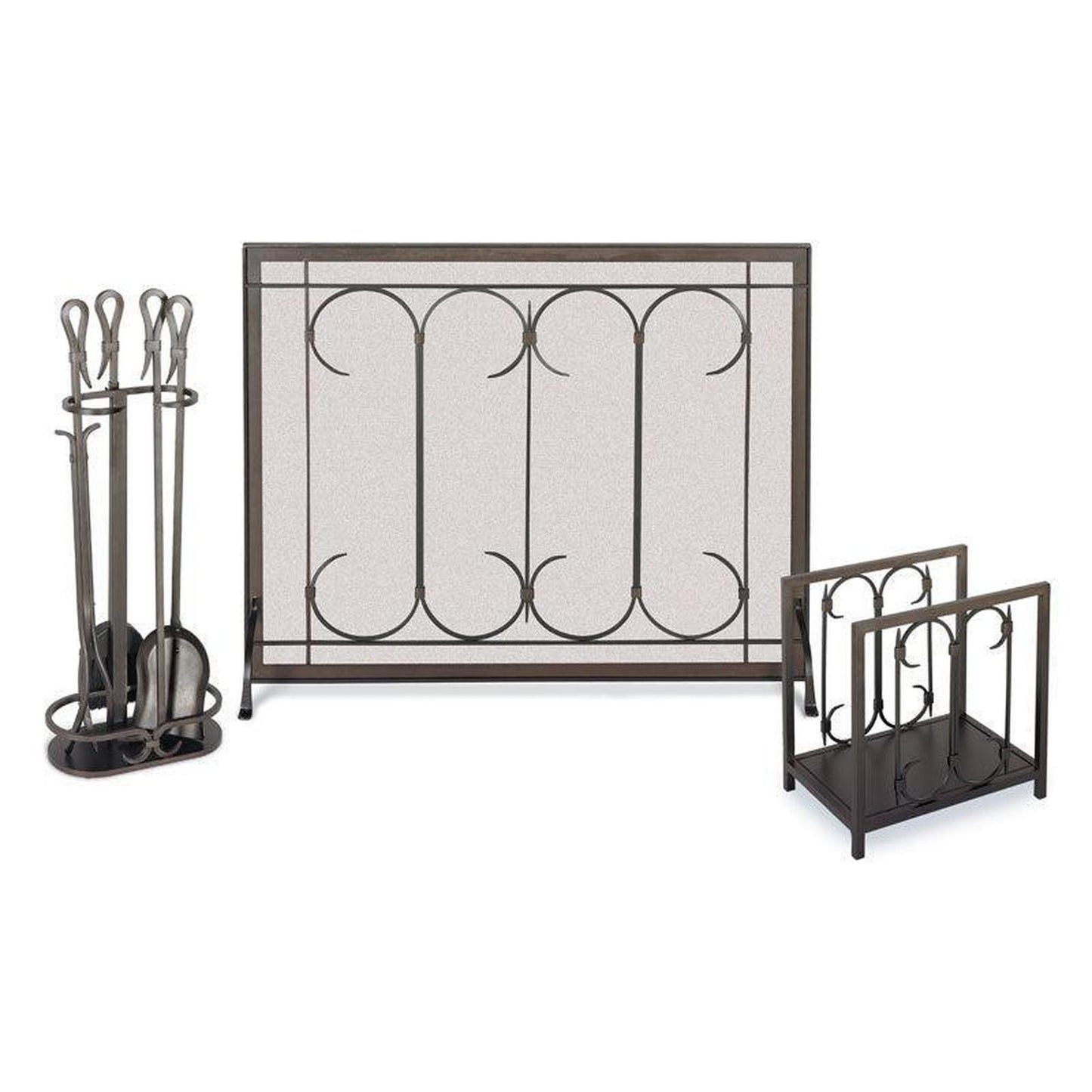 Pilgrim’s Iron Gate Tool Set: The robust appeal of these hand-forged iron designs will be appreciated by those who yearn for the old-style virtues of quality craftsmanship and lasting materials. This beautiful four-piece tool set includes a poker, shovel, tongs, and natural fiber brush nestled in the forged gallery rail base.