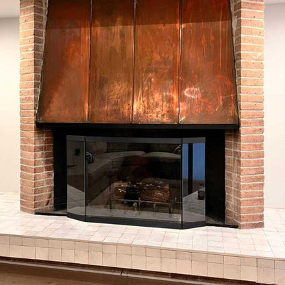 Our Modern Glass Tri Panel fireplace screen will instantly transform the focal point of your room. Special high-temperature safety glass is trimmed top and bottom with precision stainless steel cap details and plated with brass to give a beautiful on-trend fit and finish not found in most fireplace screens today. Fully adjustable with precision hinges, this Modern Glass screen is designed to fit most fireplaces.