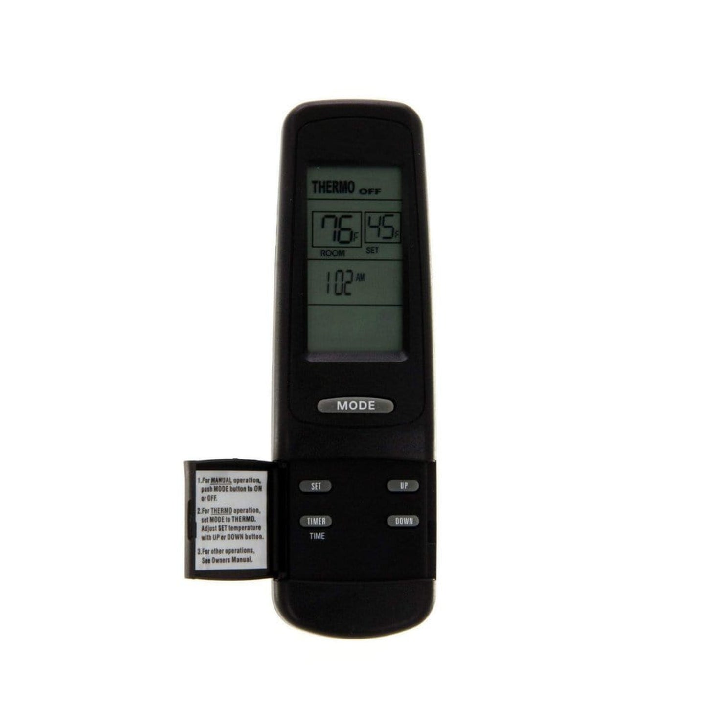 Skytech Batt II/III Heat-N-Glo Fireplace Remote Control provides wireless thermostatic and timer control of gas heating fireplaces with the simple click of a button. The remote control transmitter operates on (2) 1.5V AAA batteries and features an LCD display that uses a 5 button (MODE/UP/DOWN/SET/TIMER&TIME) interface to communicate wirelessly to a receiver that operates on (4) AA batteries. The receiver connects to all standard millivolt valves. Enjoy the ambience of a cozy fire, control the temperature of the room, and use the timer function all without sacrificing the comfort of your seat using this fireplace remote control from Skytech.