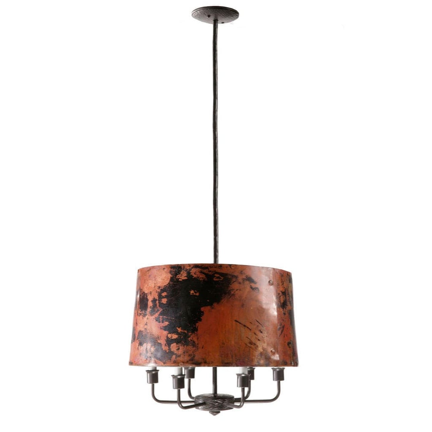 Stone County Ironworks 18" 904-209 Cedarvale Iron 6-Arm Pendant Lamp w/ Copper Shade