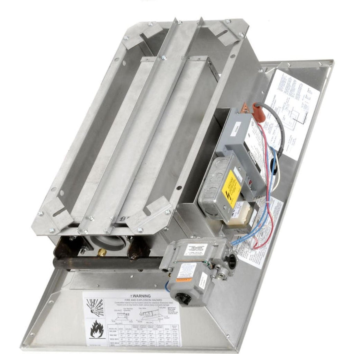 Ideal for spot heating large areas. Dimpled tile assembly offers increased radiant efficiency. Made with corrosion resistant aluminized steel. Aluminum reflectors maximize radiant output. Millivolt Standing Pilot Heaters do not require electrical power and operate with 100% gas shut-off safety control. Allows horizontal or angle mounting. Includes protective radiant screen. CSA certified. This product has limited warranty of 1 year.