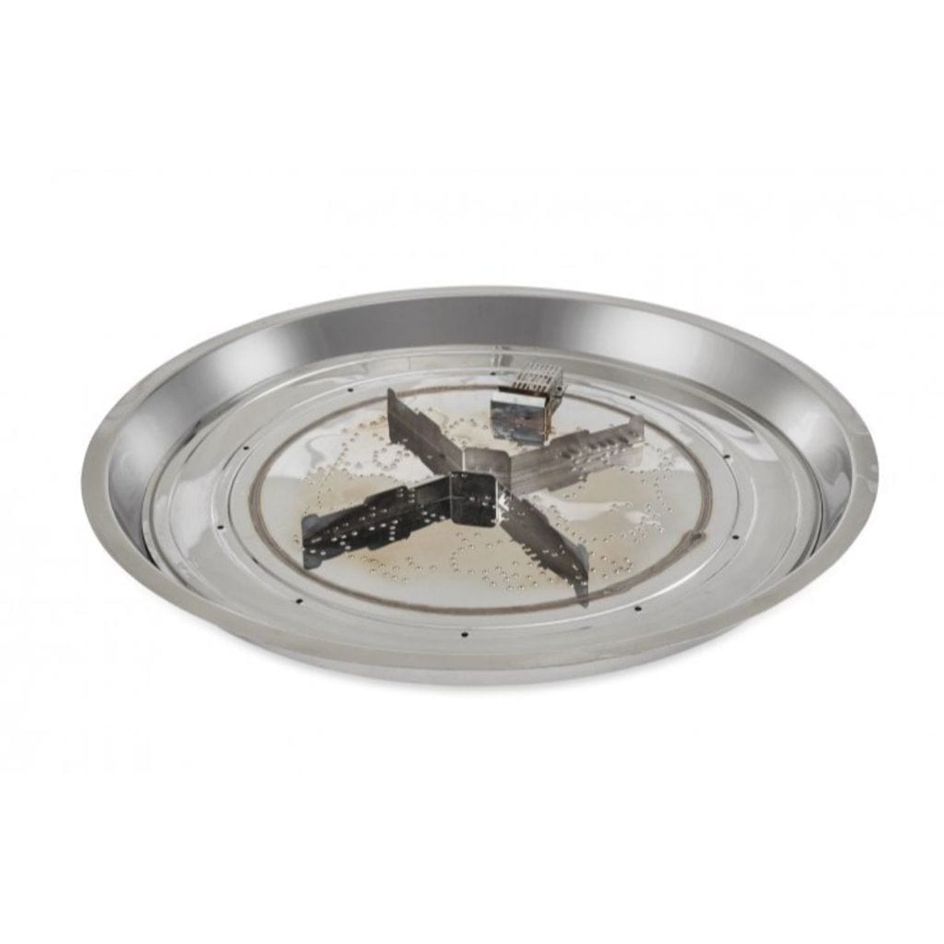 Round Stainless Steel Crystal Fire® Plus Burner can be used for custom-built fire pits or your own outdoor fire feature to complement your landscaping project. All burners have a higher BTU capacity and upgraded burner construction for a brighter, taller, fuller, more yellow flame. Adjust the flame height to your desired setting and enjoy. With just the push of a button, a beautiful clean-burning fire appears atop a bed of tempered fire glass gems.