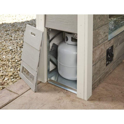 - Access door conceals standard 20 lb. propane tank in base for 40” and 60” models