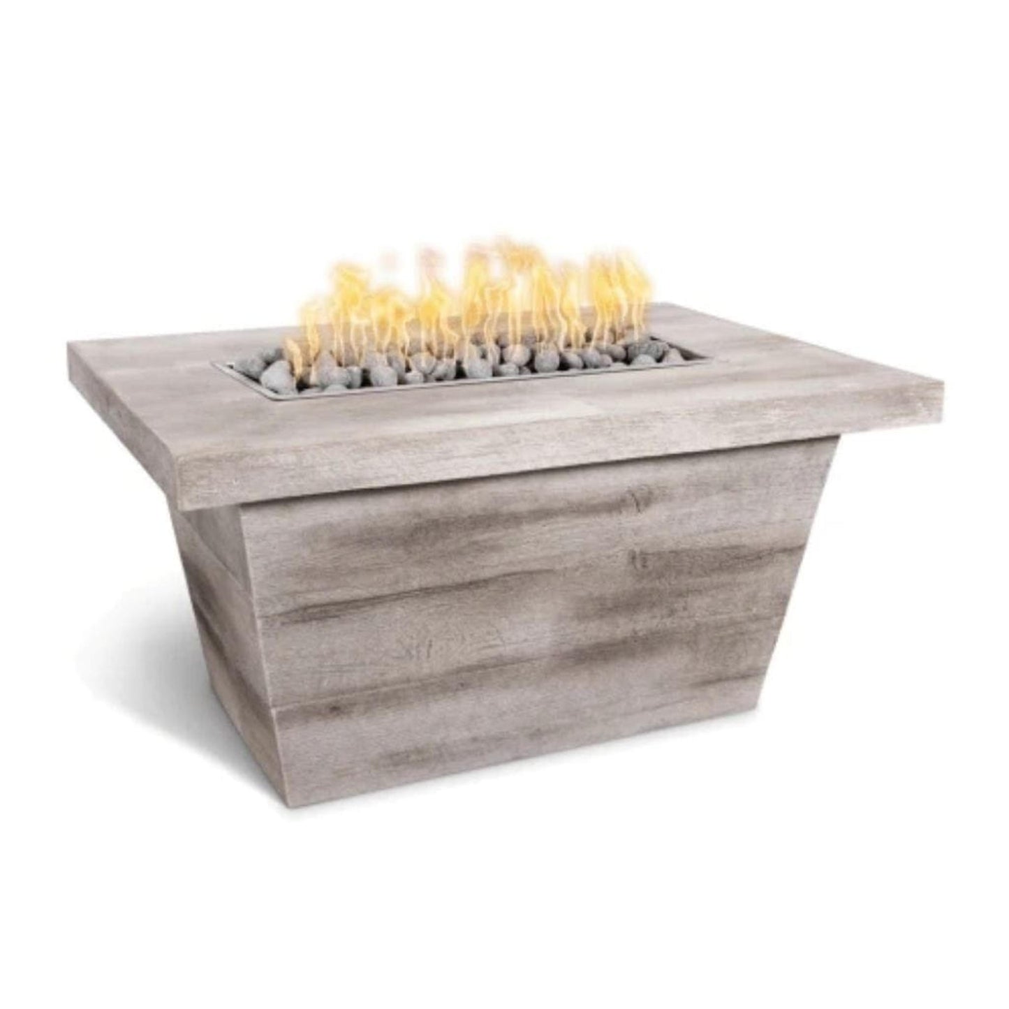 The Outdoor Plus Carson Rectangle Wood Grain Concrete Fire Pit is a very appealing fire pit that realistically mimics weathered wood, but has the durability of concrete. It will add a touch of rustic charm to your outdoor living area. The Outdoor Plus Carson Rectangle 24" Tall Fire Table in Woodgrain Concrete by The Outdoor Plus is an elegant contemporary and great looking Fire Pit, designed to be functional as well as beautiful. It's the perfect piece to gather around with some wine and tapas with friends. The Carson Rectangle Gas Fire Pit is sure to impress your friends, and become the center point of your outdoor area. This fire pit comes with everything you need to get it up and running quickly, just choose your ignition system and fuel type. All Fire Features by The Outdoor Plus are individually handmade. Slight variations in color and texture may occur.