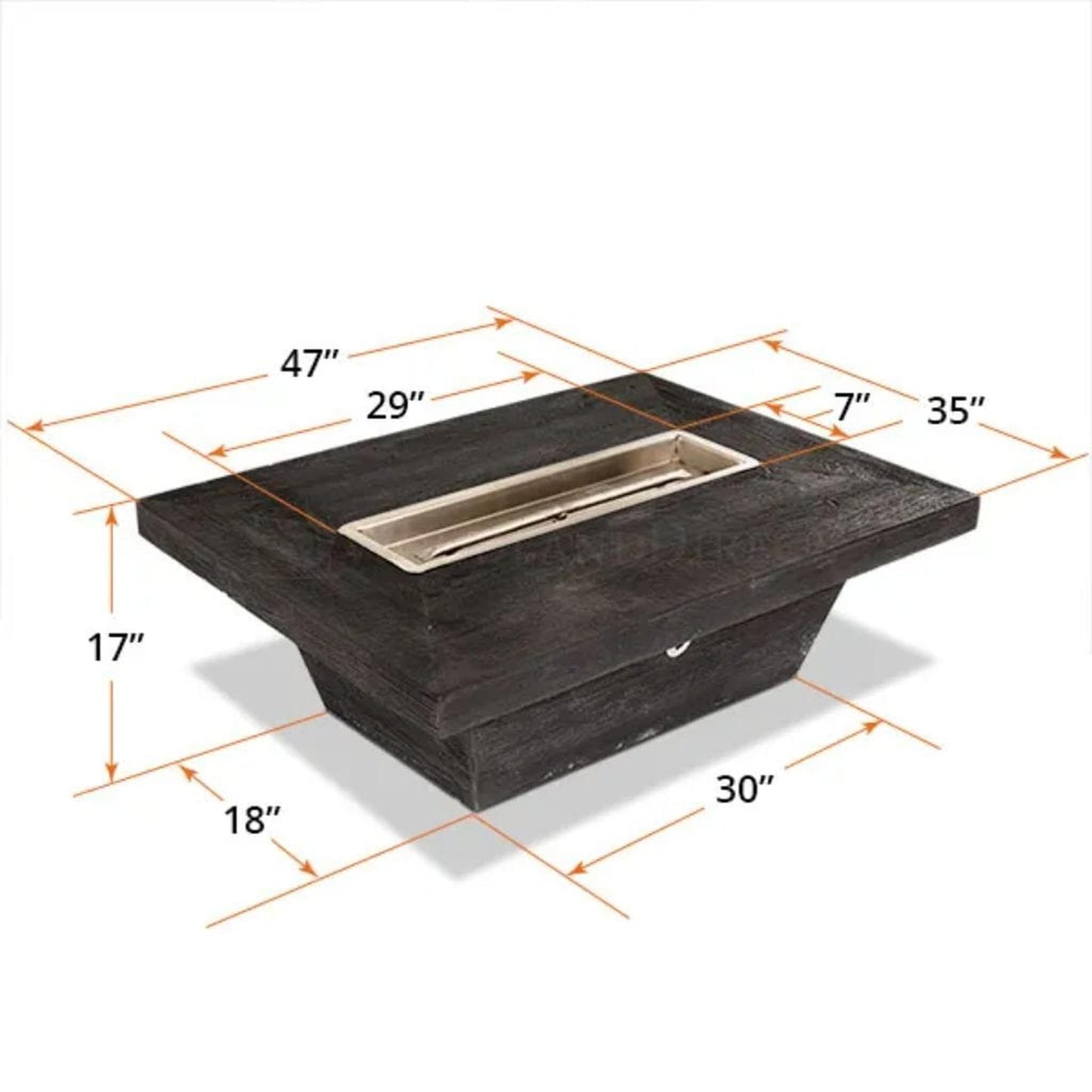 The Outdoor Plus Carson Rectangle Wood Grain Concrete Fire Pit is a very appealing fire pit that realistically mimics weathered wood, but has the durability of concrete. It will add a touch of rustic charm to your outdoor living area. The Outdoor Plus Carson Rectangle 16" Tall Fire Table in Woodgrain Concrete by The Outdoor Plus is an elegant contemporary and great looking Fire Pit, designed to be functional as well as beautiful. It's the perfect piece to gather around with some wine and tapas with friends. The Carson Rectangle Gas Fire Pit - Low Profile is sure to impress your friends, and become the center point of your outdoor area. This fire pit comes with everything you need to get it up and running quickly, just choose your ignition system and fuel type. All Fire Features by The Outdoor Plus are individually handmade. Slight variations in color and texture may occur.