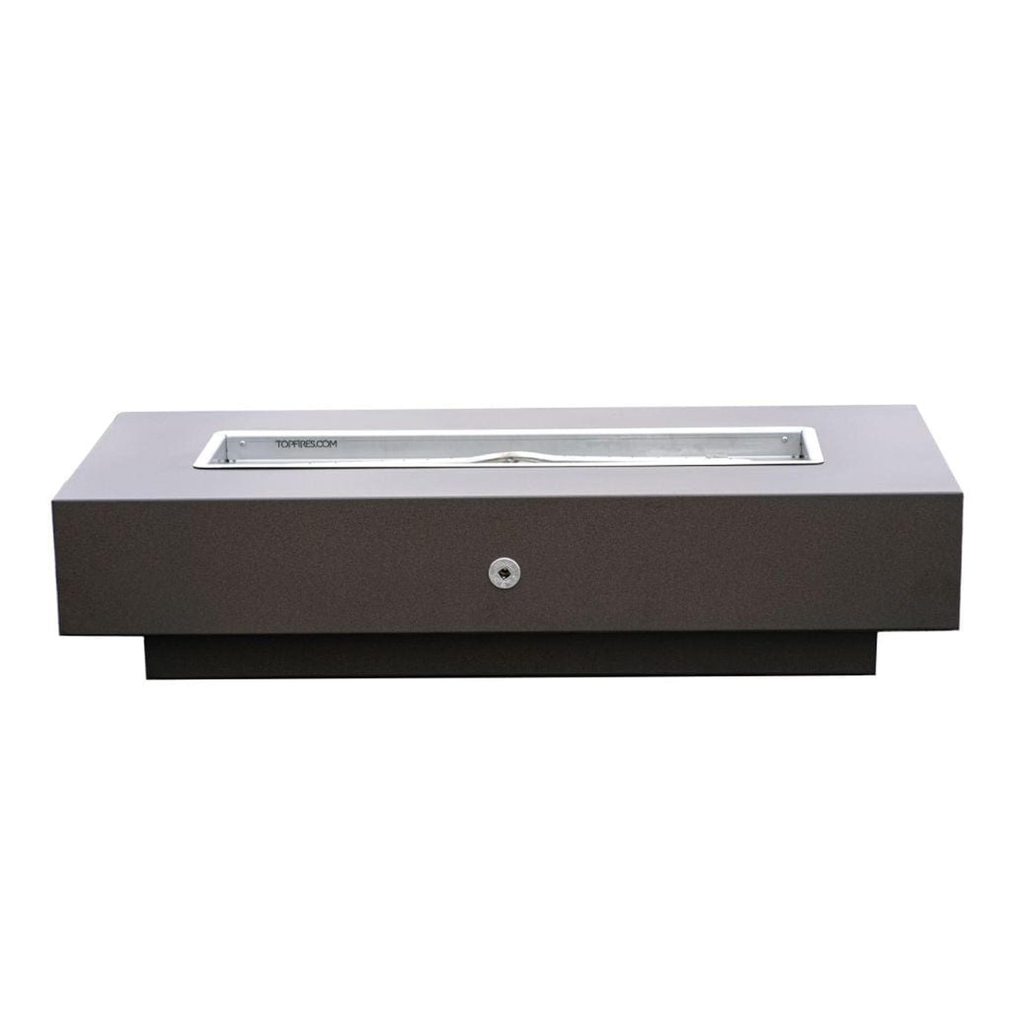 The Coronado Powder Coated Steel Rectangle Fire Pit brings simplicity and elegance to any patio or backyard. The Coronado is sure to create beautiful ambient lighting in your outdoor space. It has 10-inch 304 stainless steel burner that produces 65,000 BTUs of heat and glimmering flames. This fire Pit comes with lava rock burning display but you can upgrade to fire glass (sold separately). If substituting for fire glass, 75 pounds is usually recommended. The burner is compatible with natural gas and liquid propane.